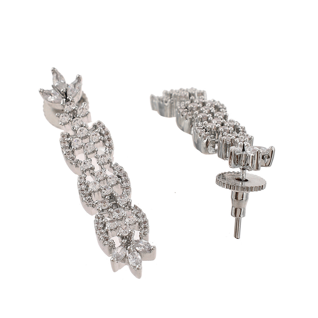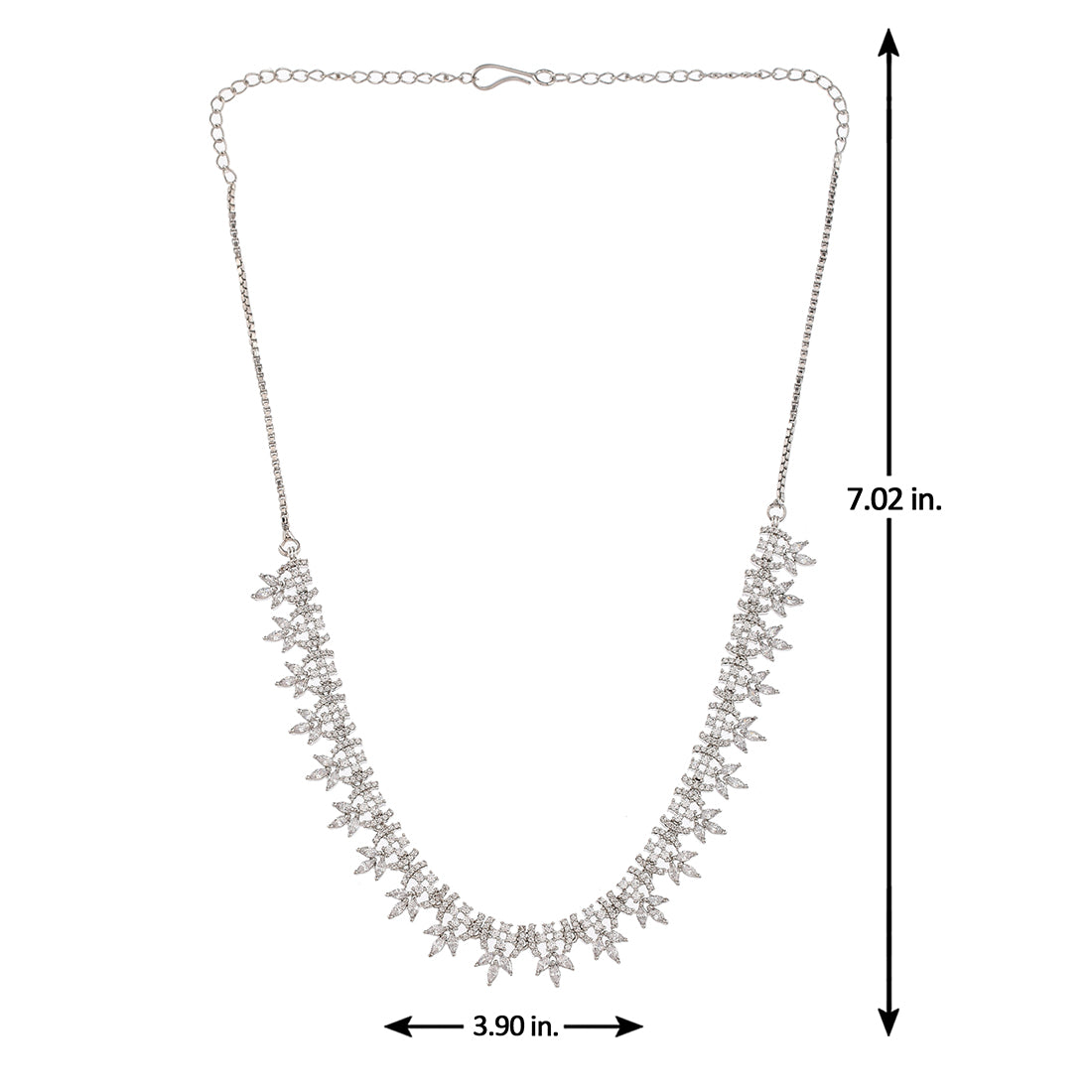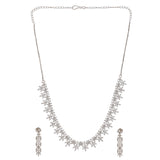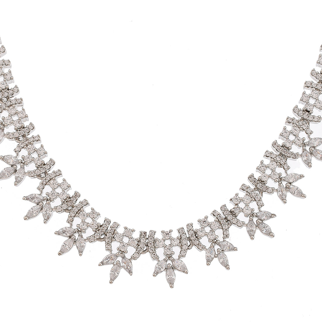 Cz Elegance Silver Plated Brass Made Leafy Necklace And Earrings