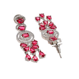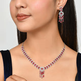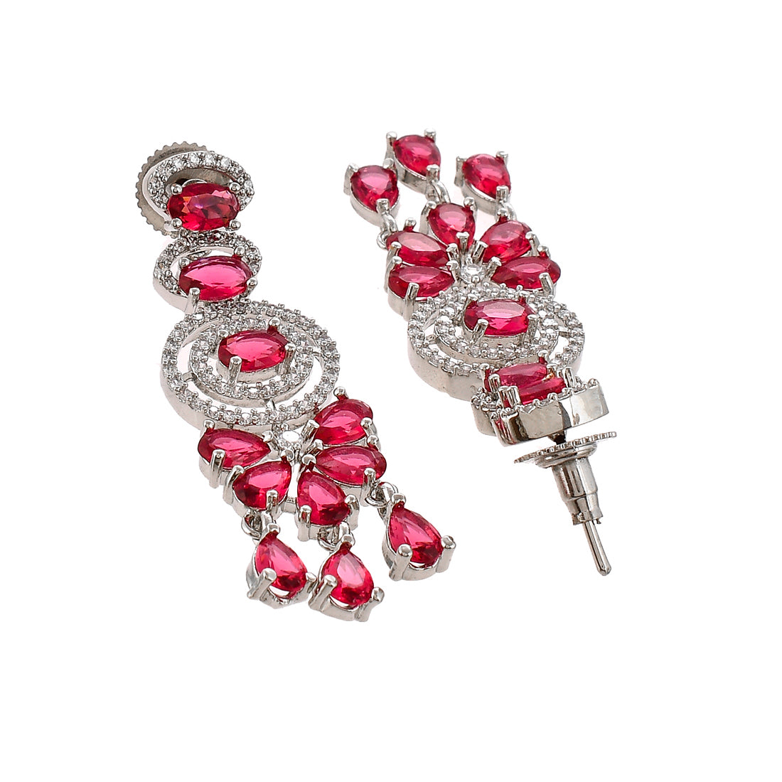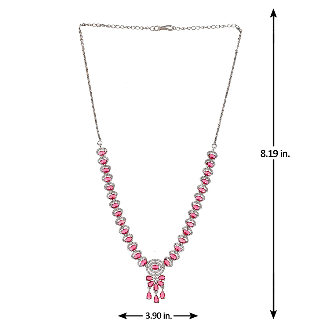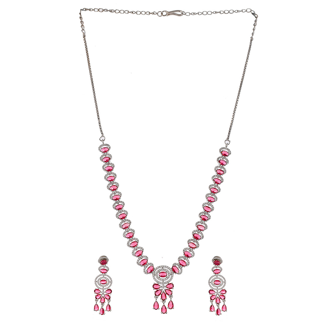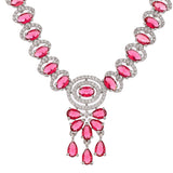 Cz Elegance Silver Plated Red Stone Necklace Set