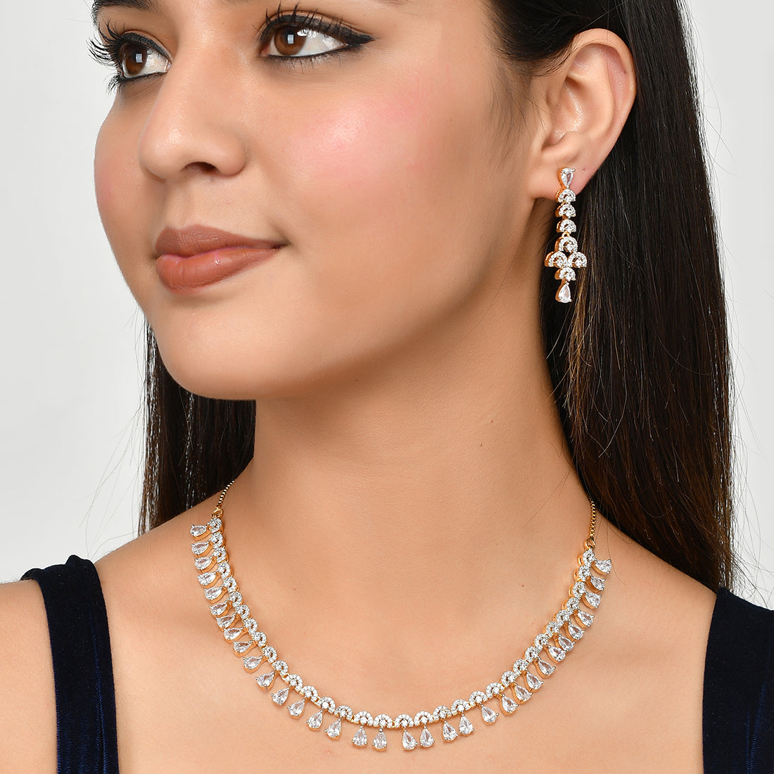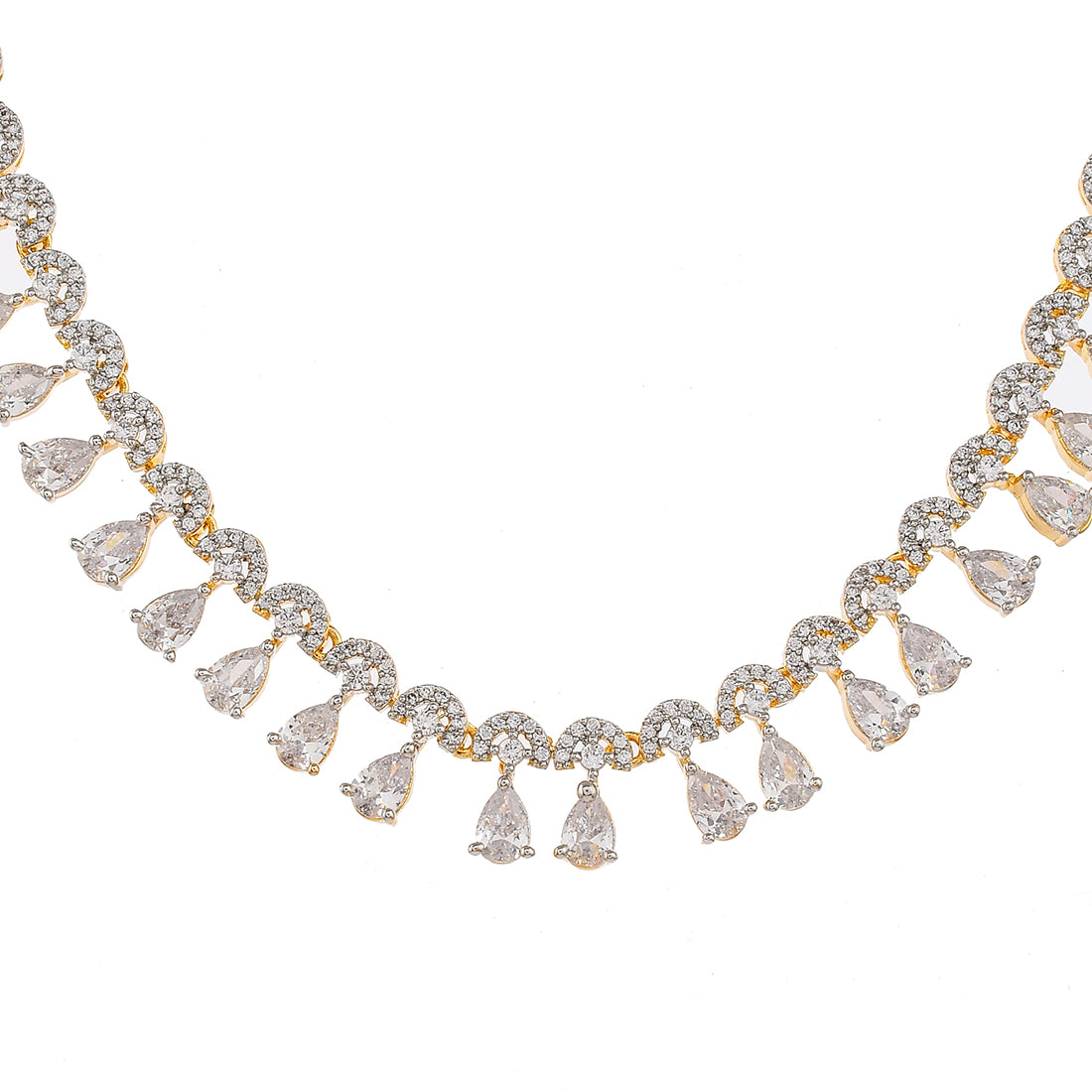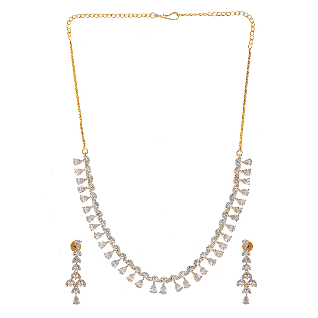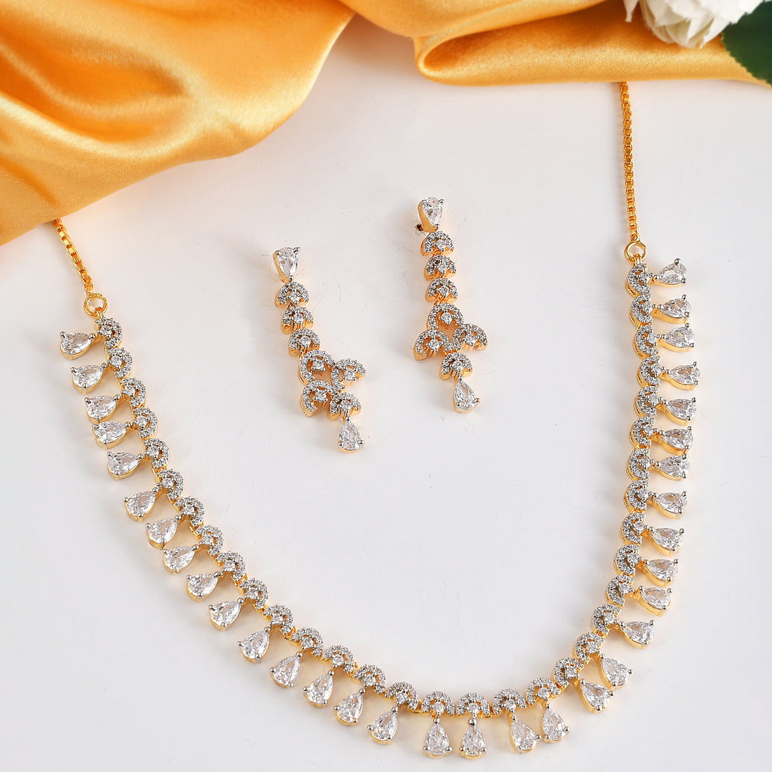 Cz Elegance Stone Studded Gold Plated Necklace Set