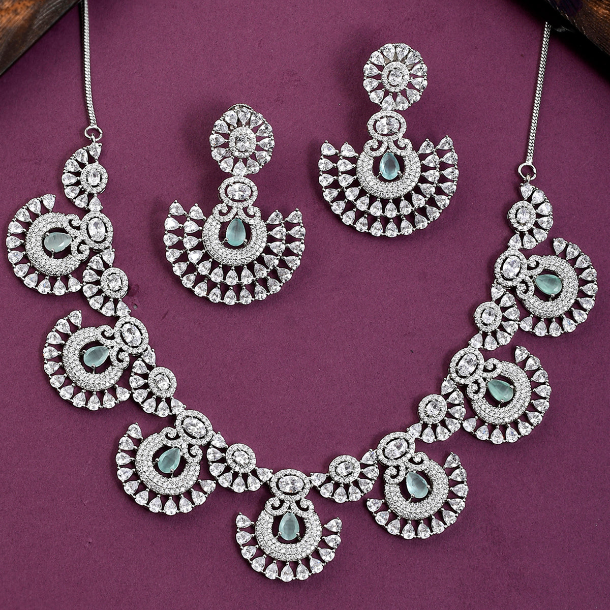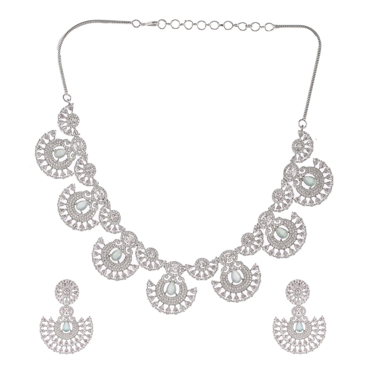 CZ Elegance White and Mint Green Zircons Jewellery Set