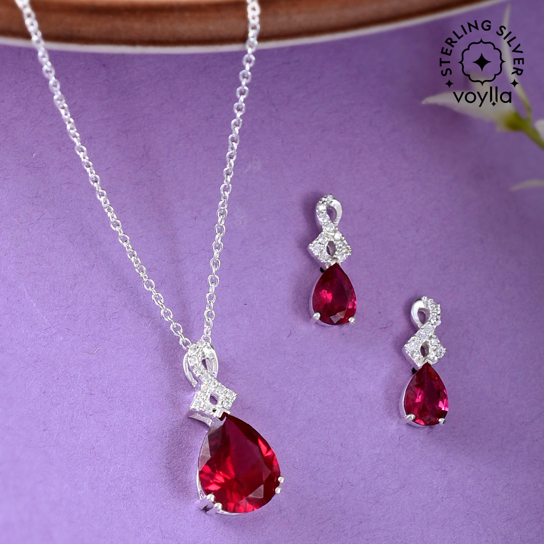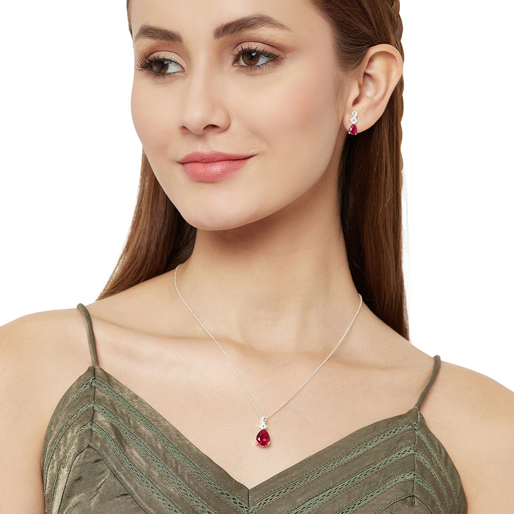 A perfect fusion of class and elegance, this silver toned pendant set studded with CZ stone will be a wonderful addition to your accessory collection. Perfect jewelry to make you shine.