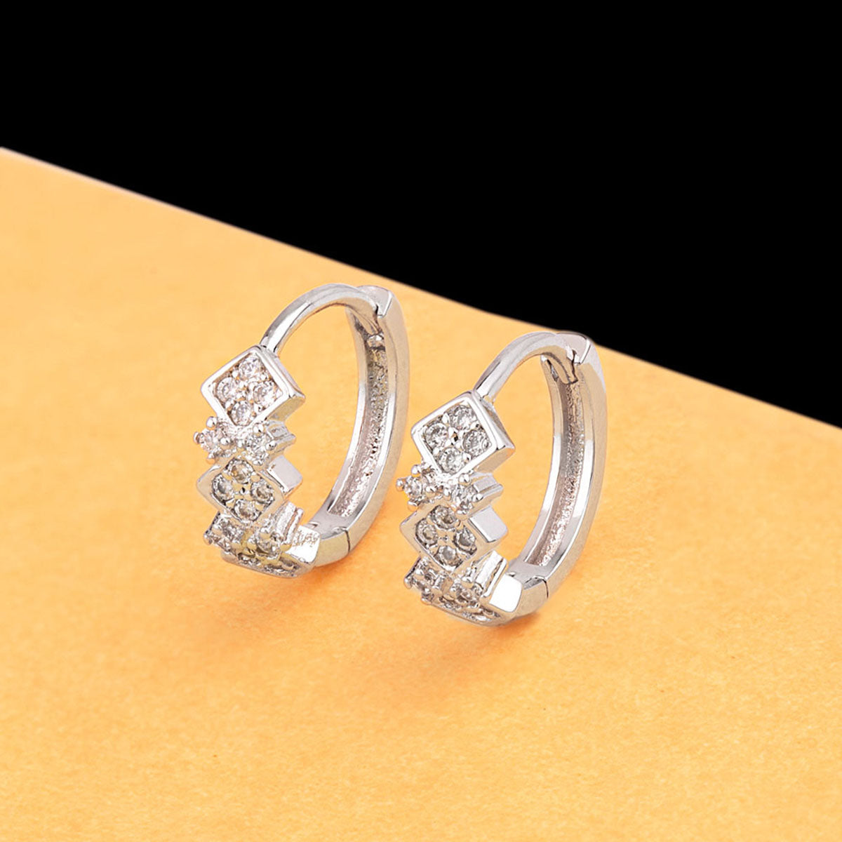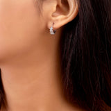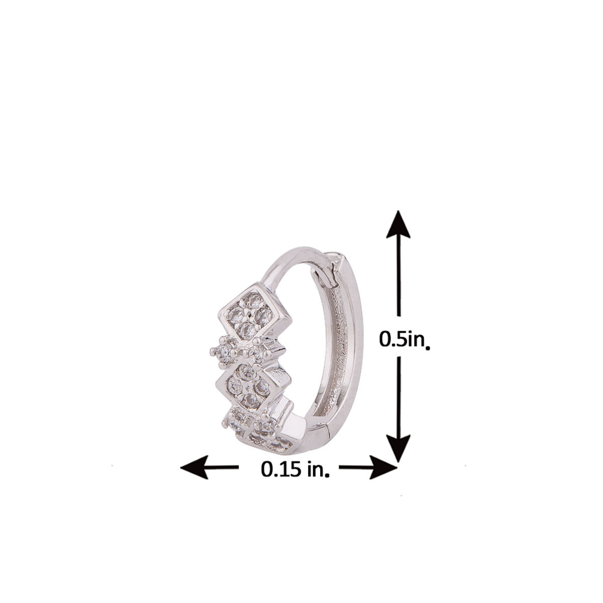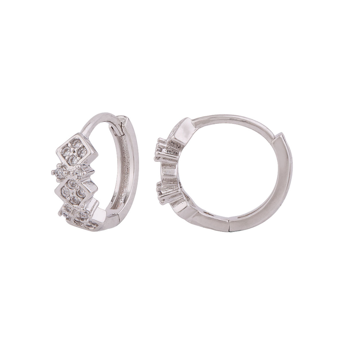 CZ gemstones embellished tiny earrings. Made from brass and silver plated. A good match for casual attire.