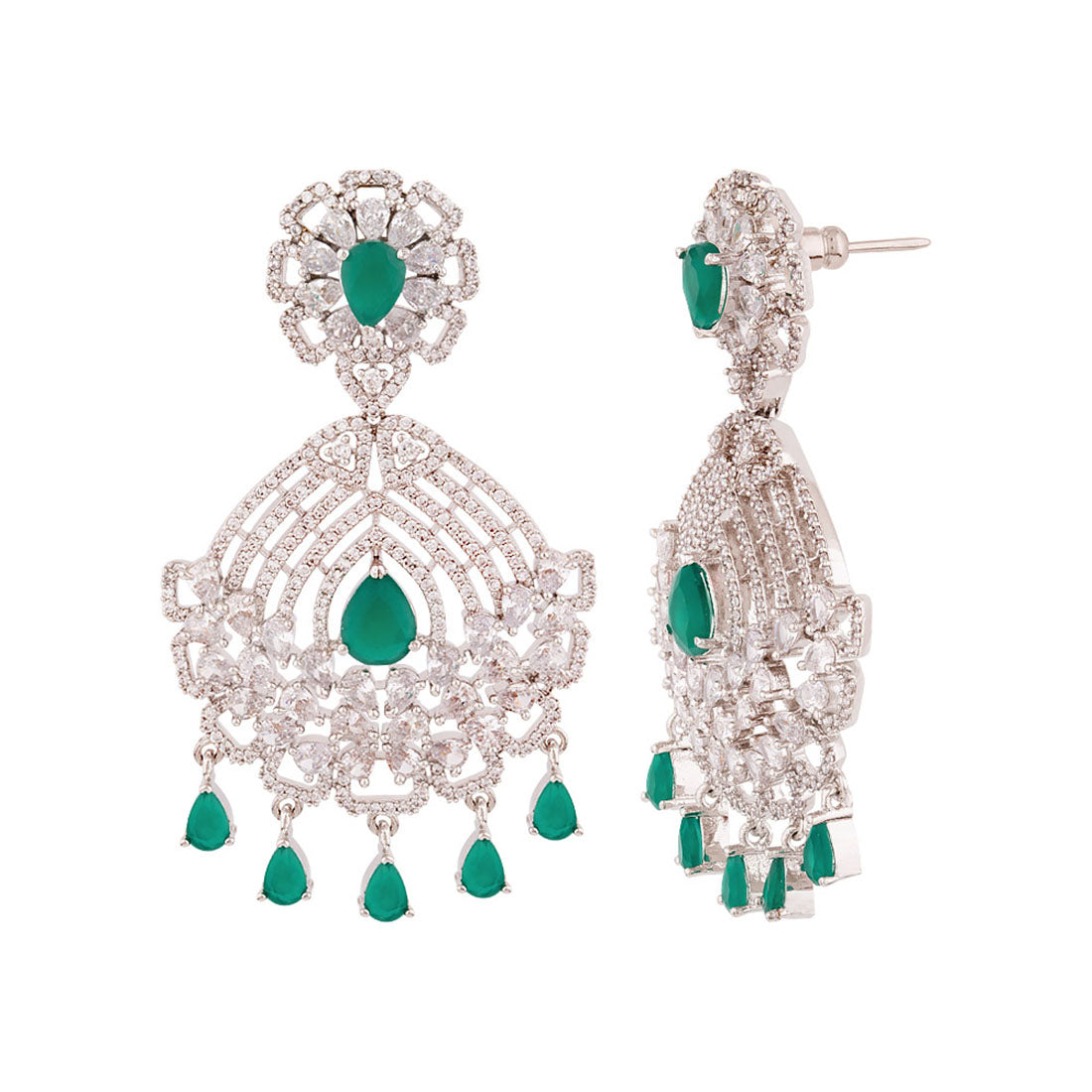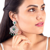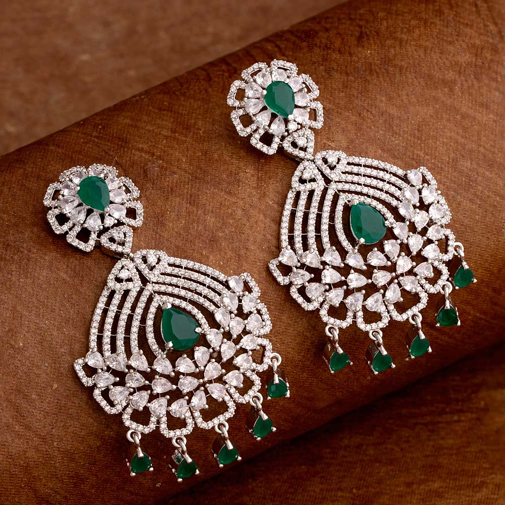 American Diamond gemstones adorned statement earrings. Made from brass and silver plated. Good for formal looks.