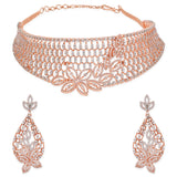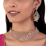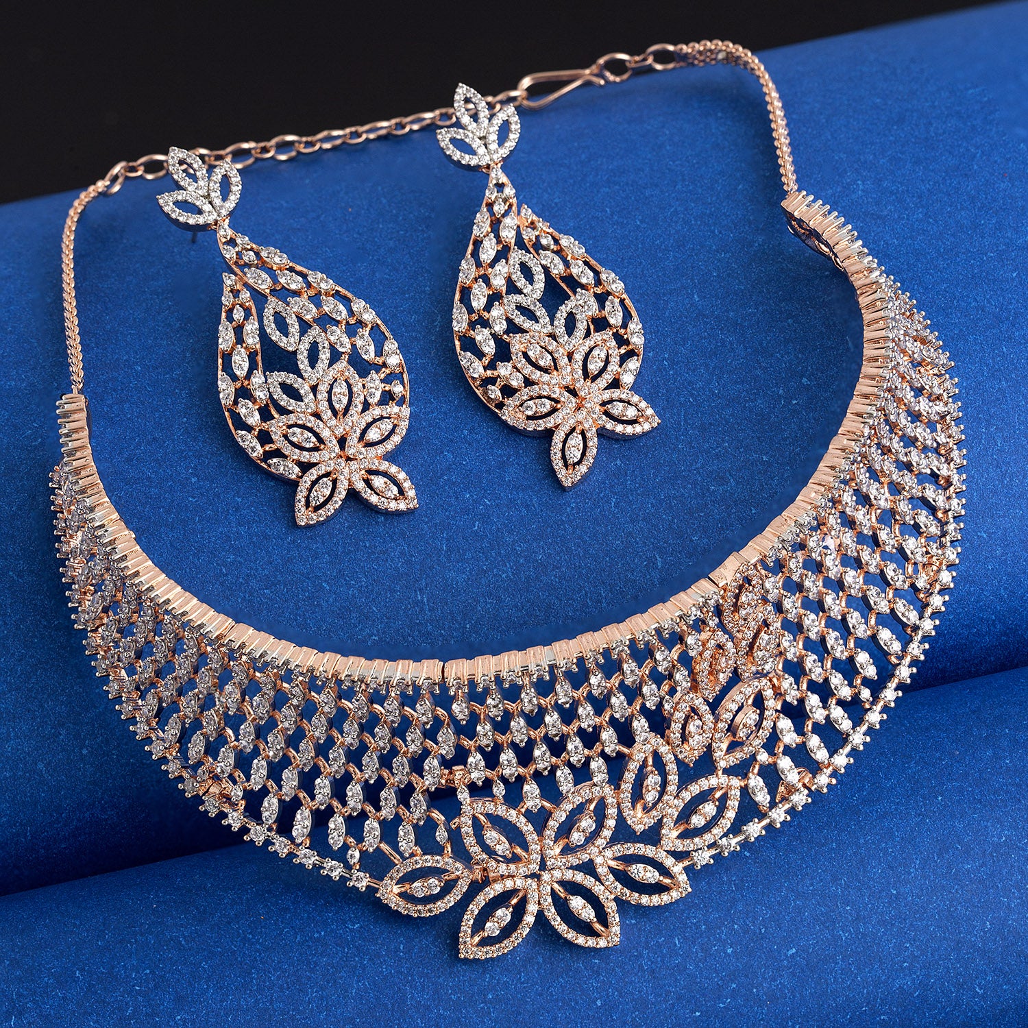 Choker and drop earrings jewellery set, made from brass and gold plated. Adorned with marquise cut cubic zirconia gemstones. Pair the set with formal attire of all kinds.