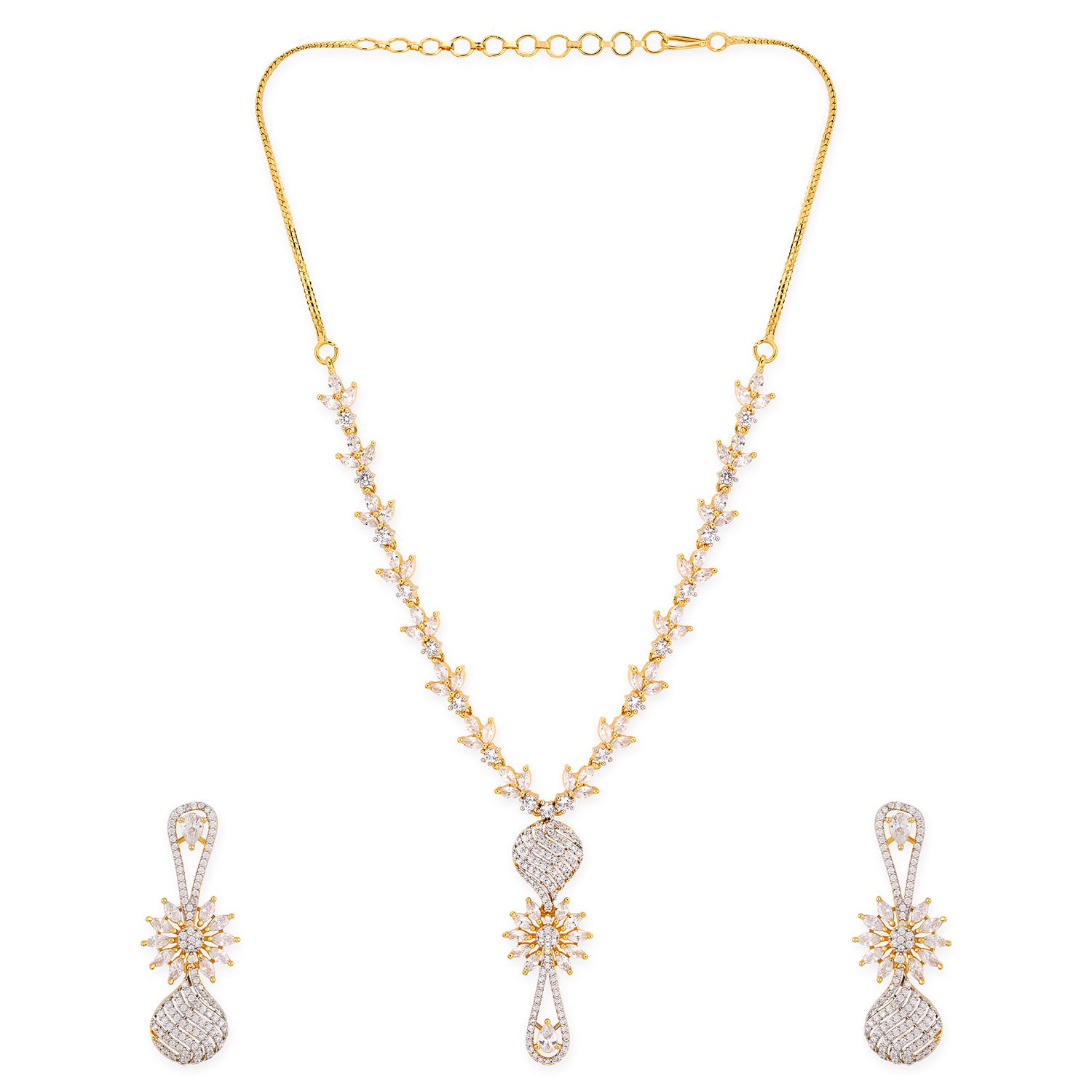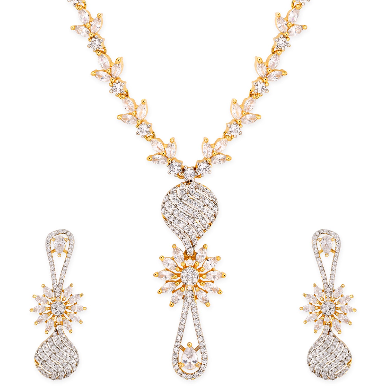 Floral motifs jewellery set with zirconia gemstones. Silver plated, lightweight and comfortable. Versatile enough to be paired with just about anything.