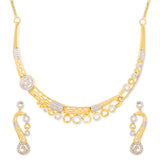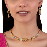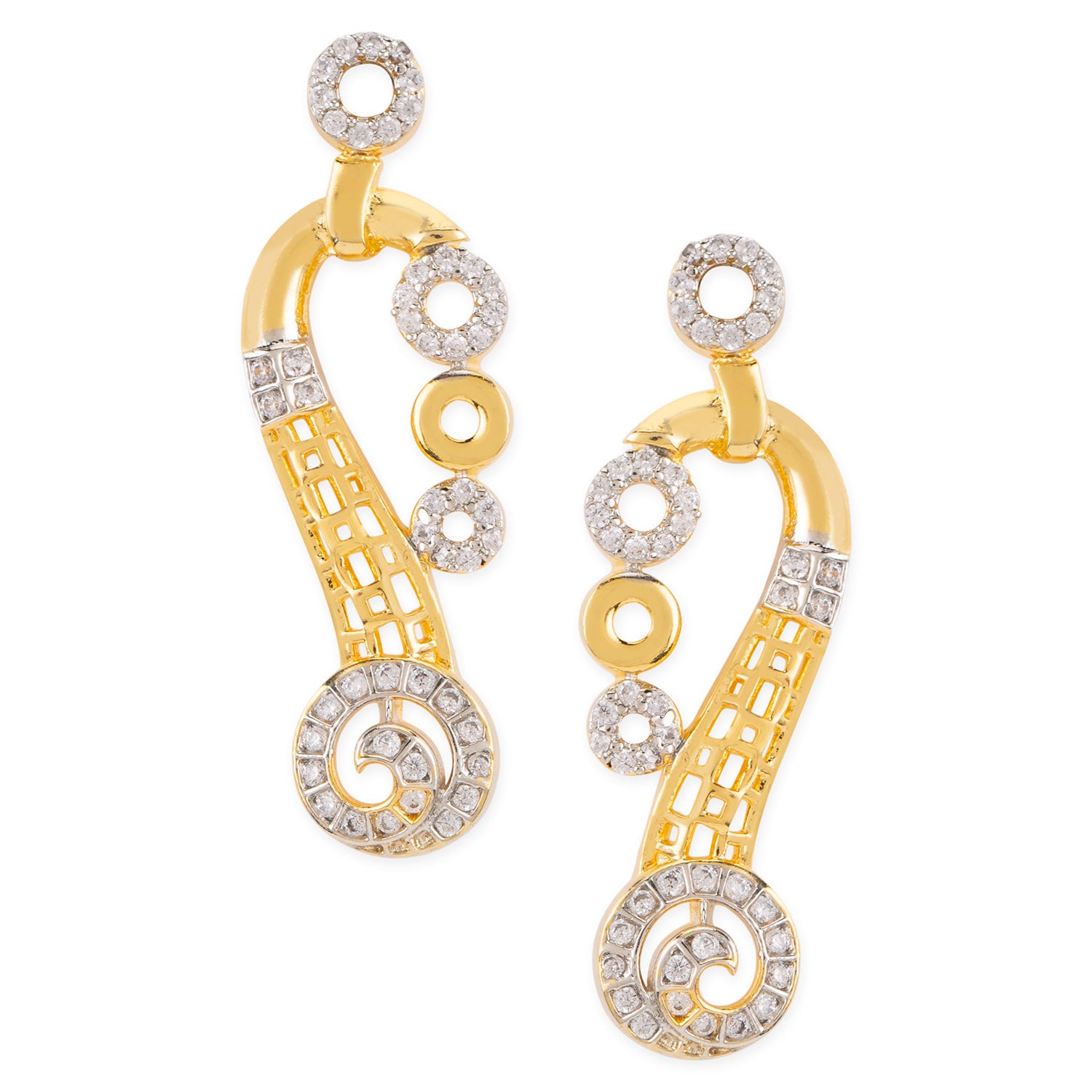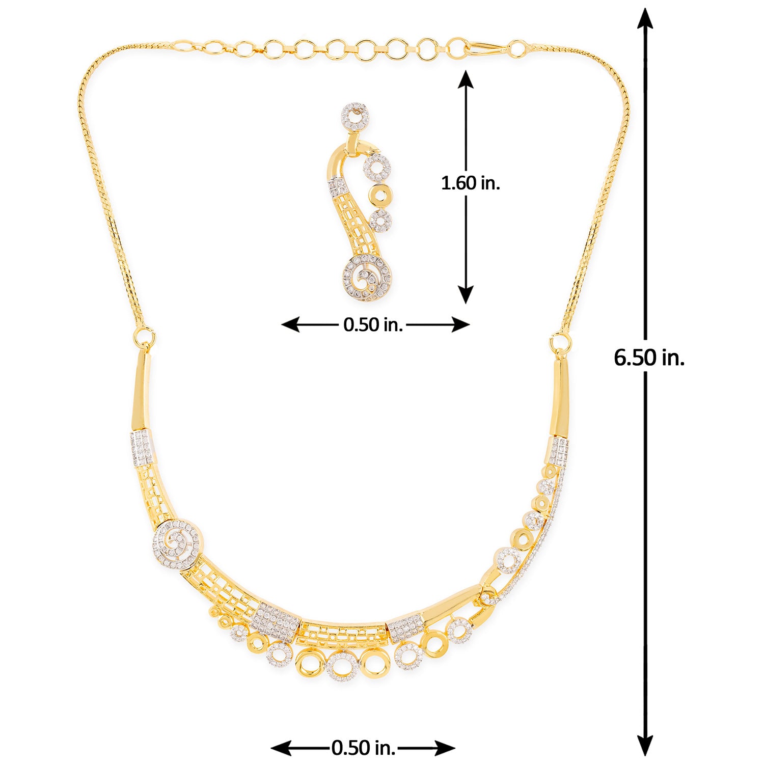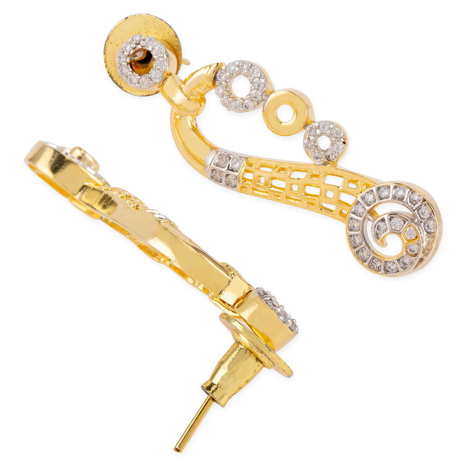 Geometric pattern brass jewellery set with gold plating. Round cut zirconia gemstones adorned. A good match for formal looks of all kinds.