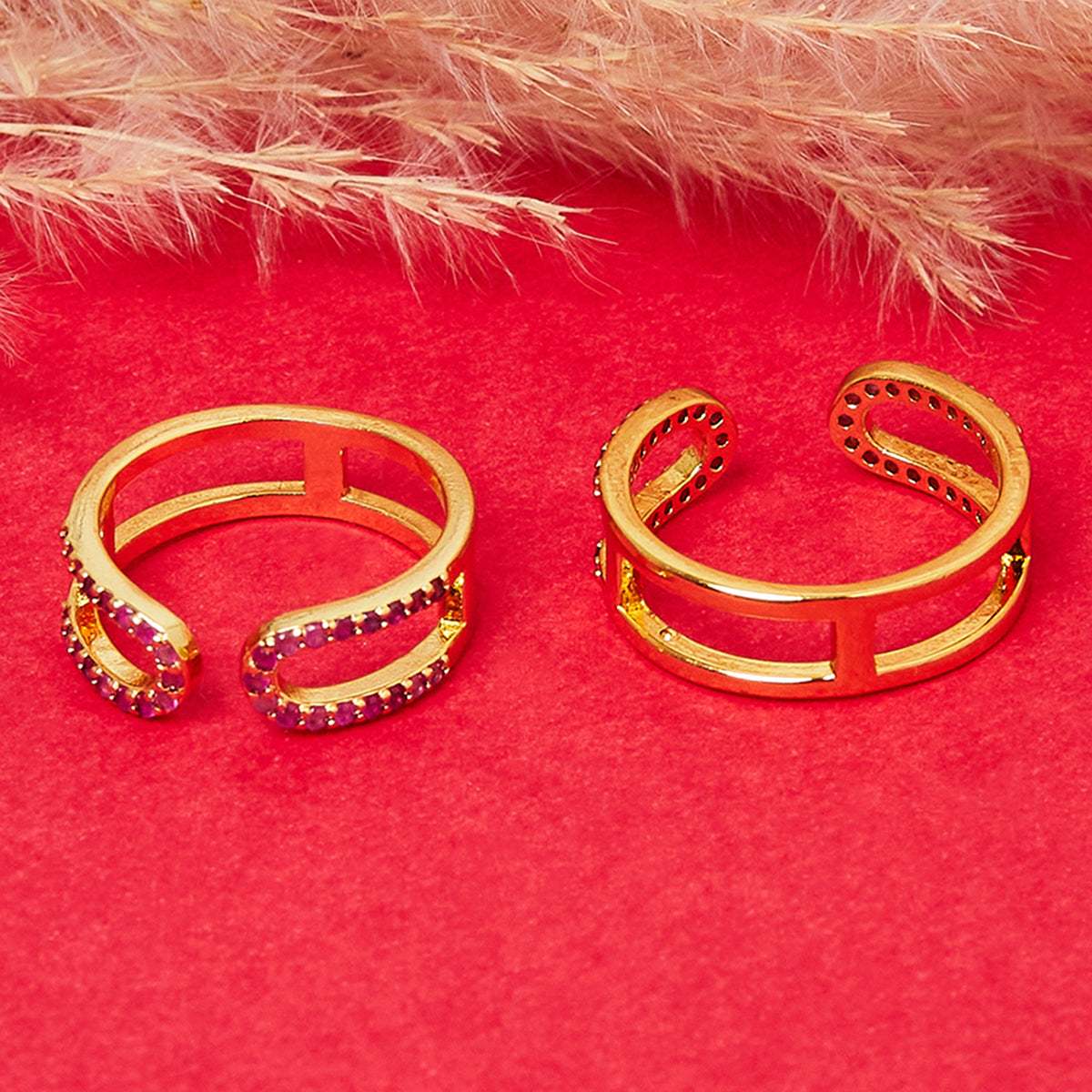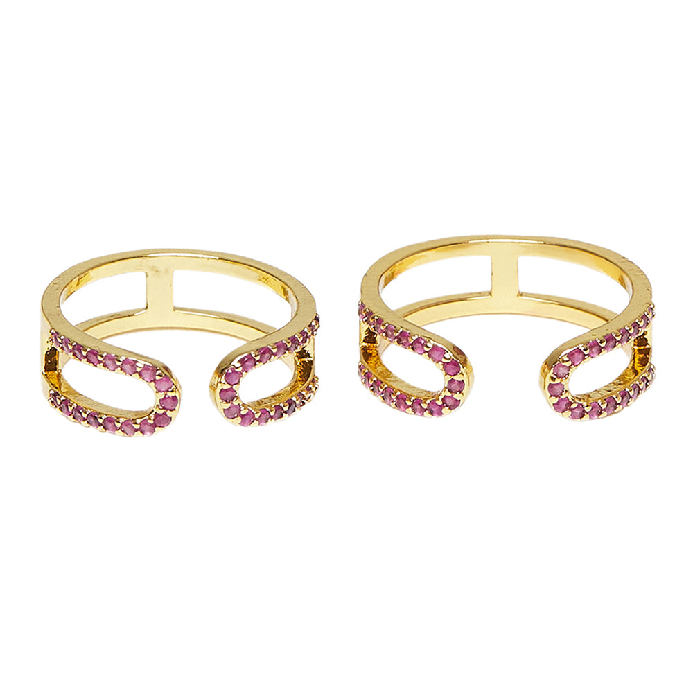 A pair of golden toe rings with glittering stones set in a crowning design. A regal design from our CZ collection.