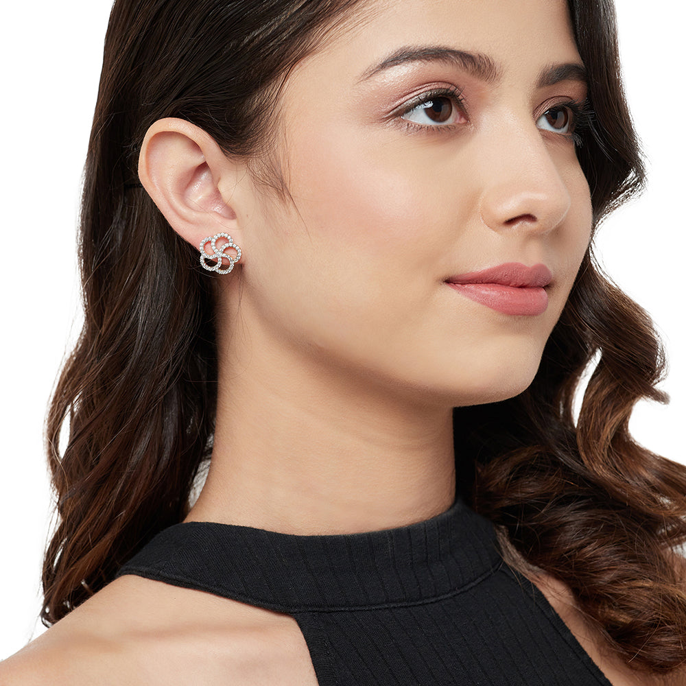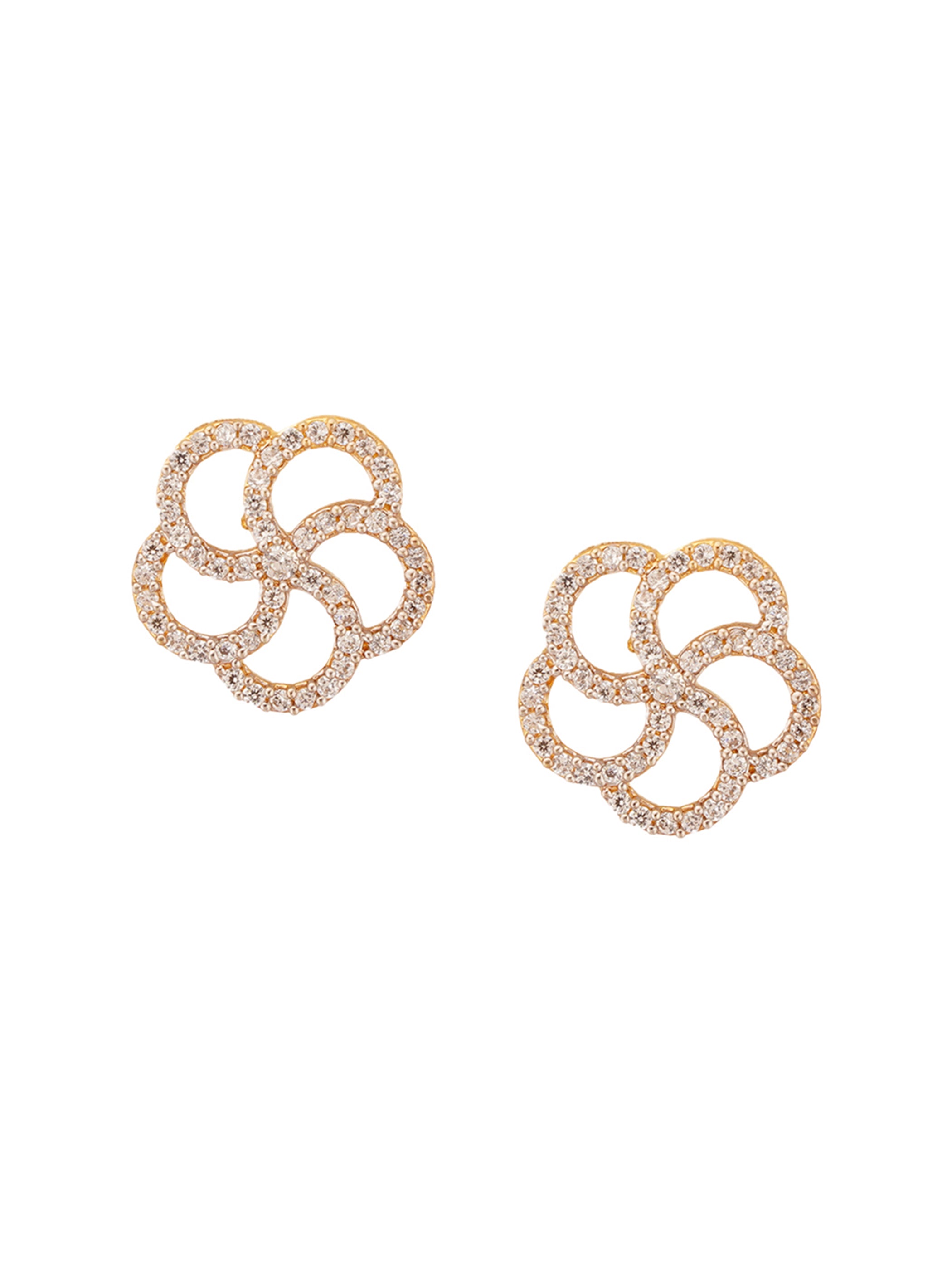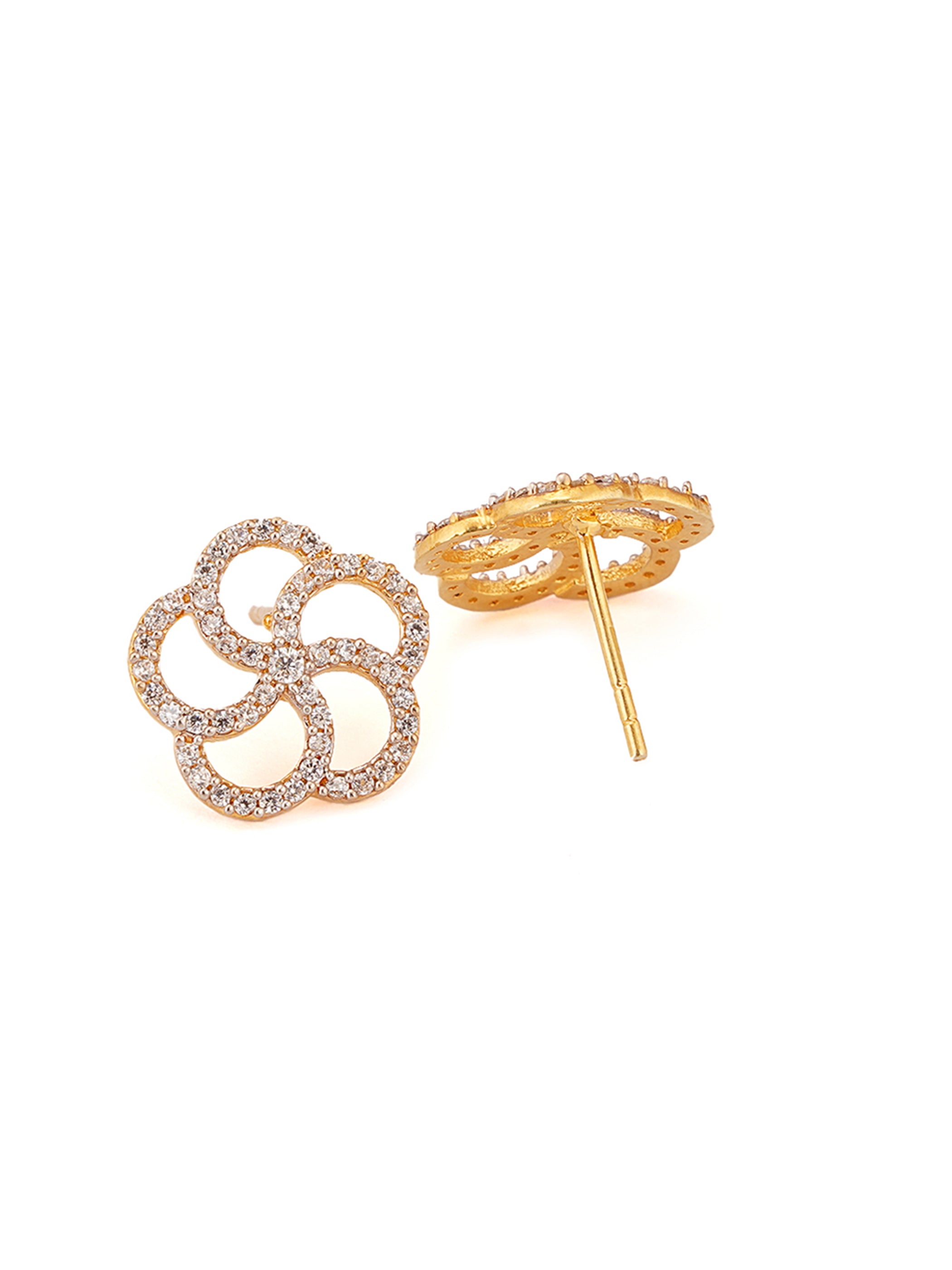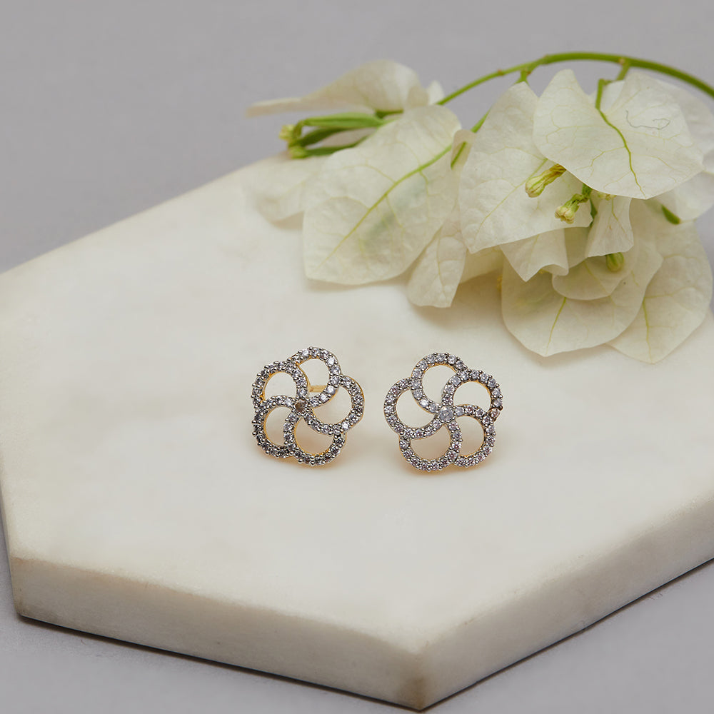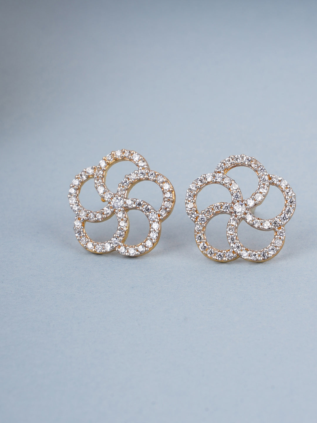 Shimmering Floret American Diamond CZ Gold Plated Flower Stud Earrings