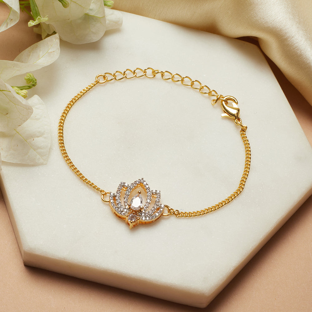 Shimmering Floret American Diamond CZ Brass Mangalsutra Bracelet