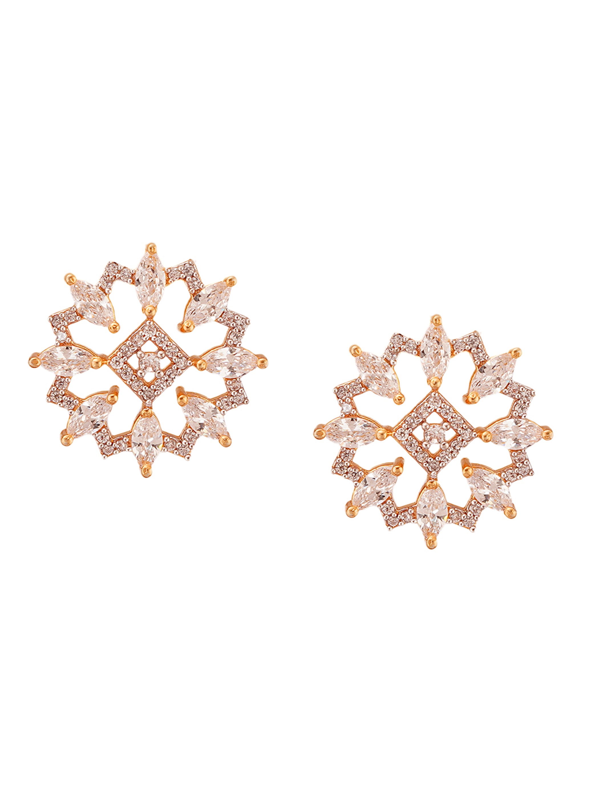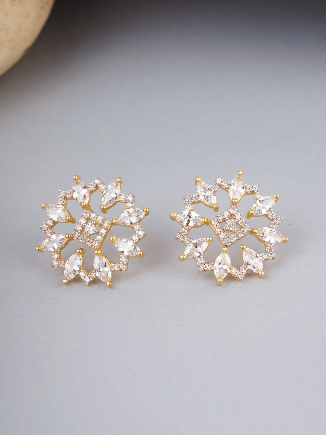 Shimmering Floret American Diamond CZ Gold Plated Brass Stud Earrings