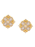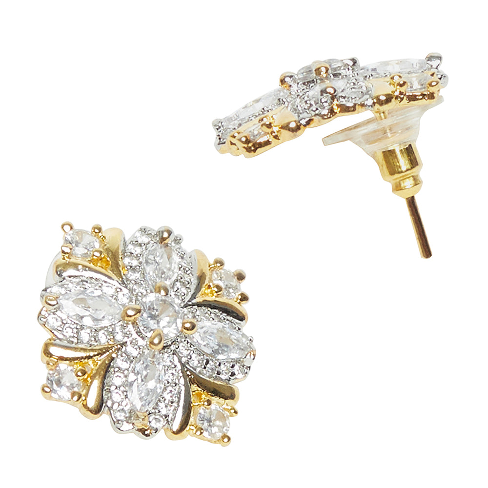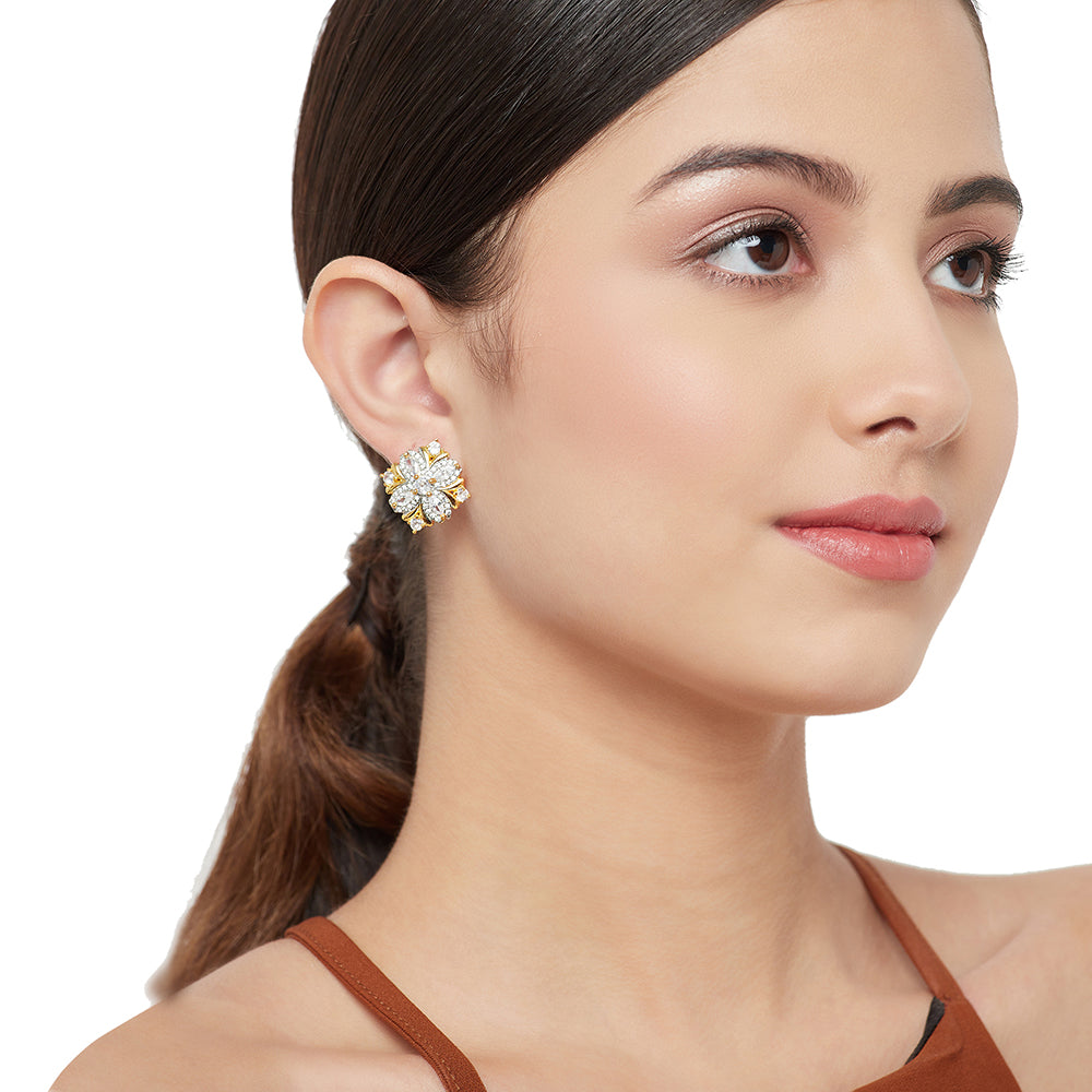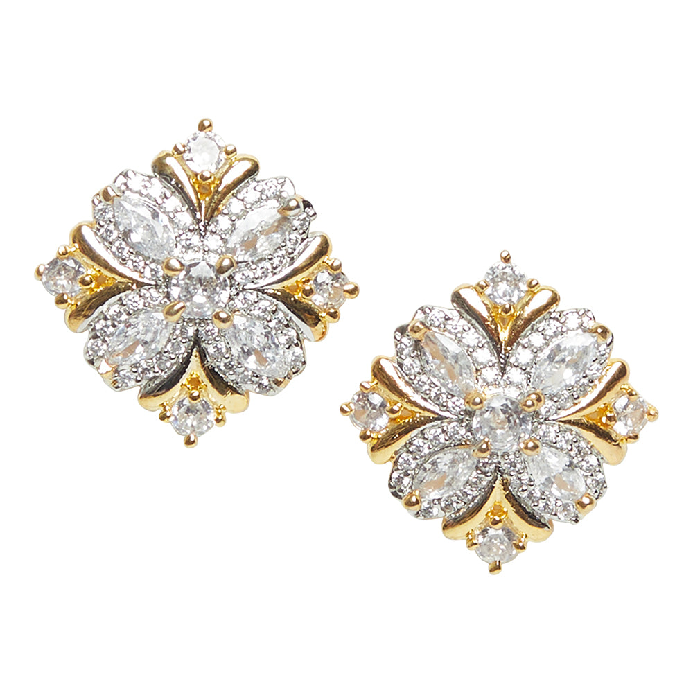Shimmering Floret American Diamond CZ Gold Plated Silver Brass Stud Earrings