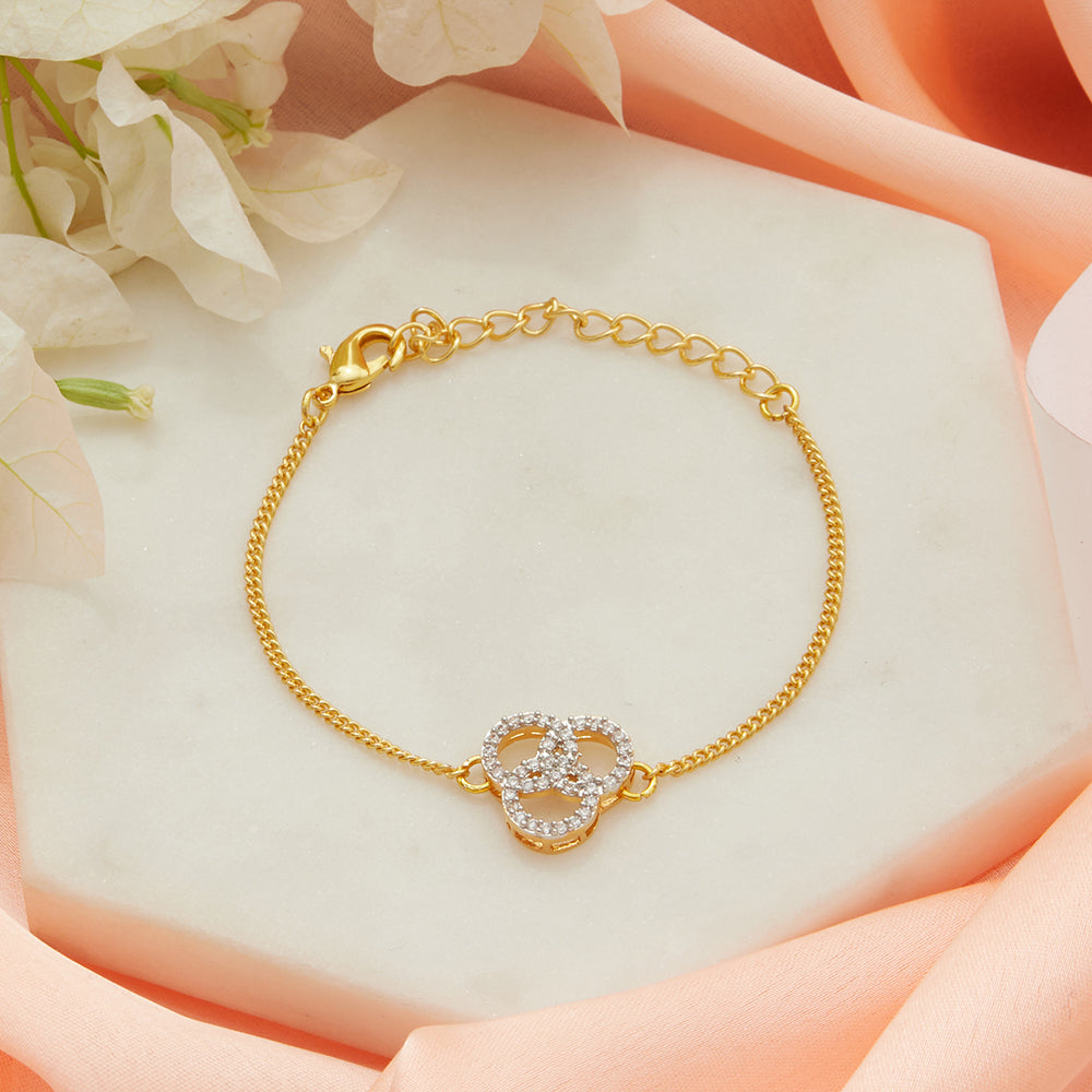 Two benefits in one Product, CZ Mangalsutra & Bracelet Gold Plating Brass Material is a true example of versatility. With a silver flower and Gold chain which is engraved with a flower pattern, this is a definitive statement piece. This lightweight piece is very easy to carry and great to show-off!