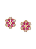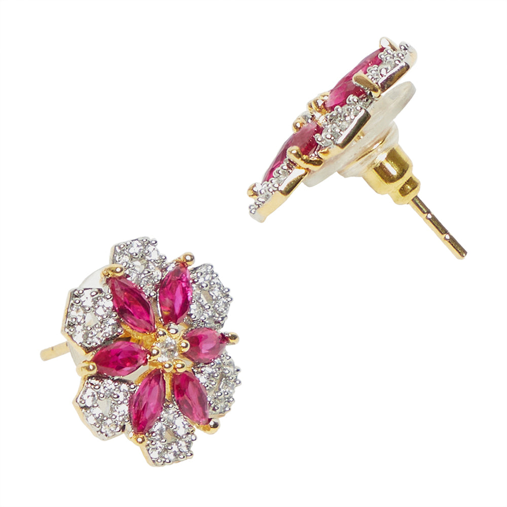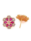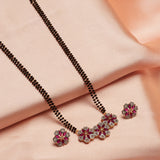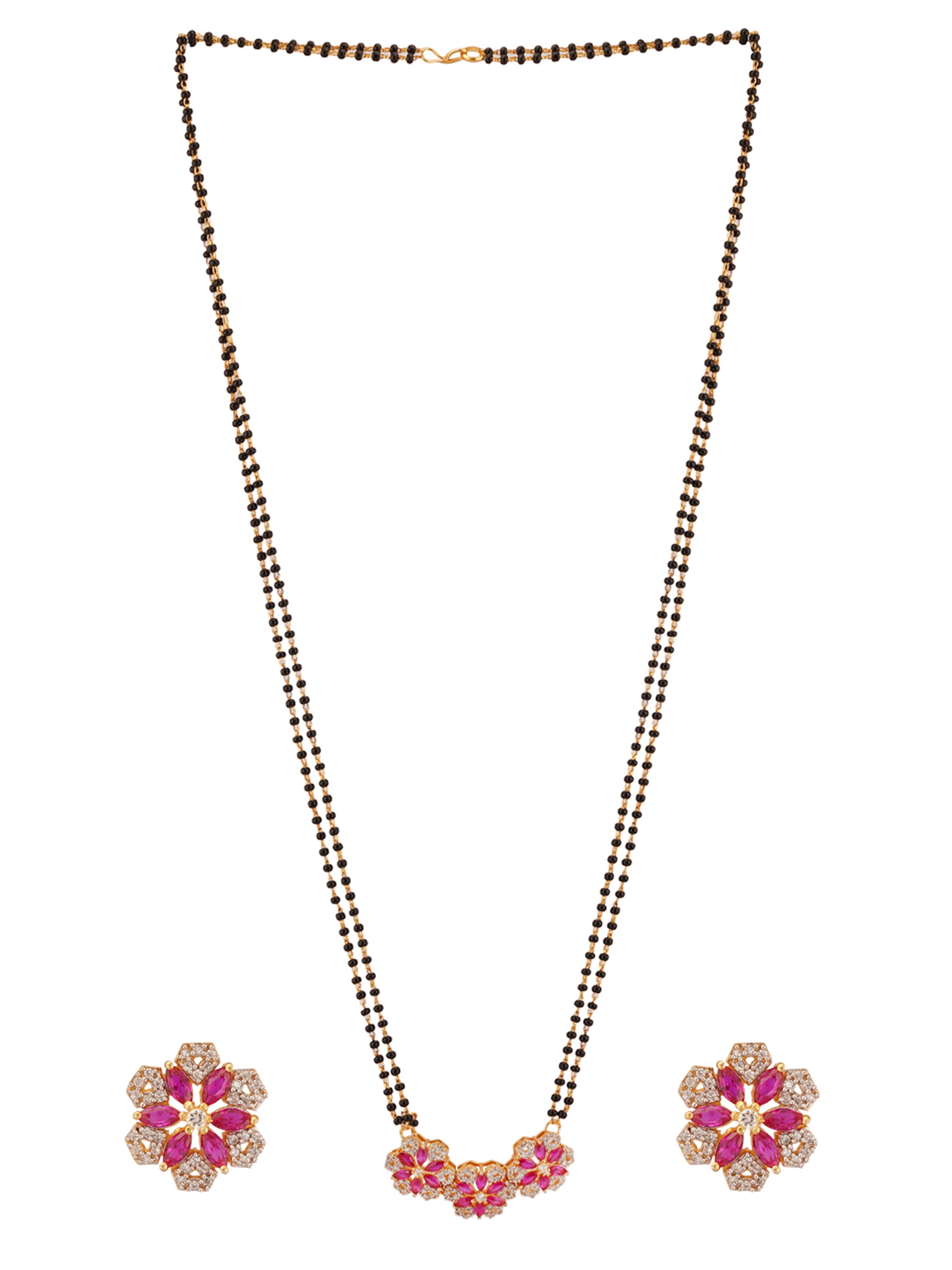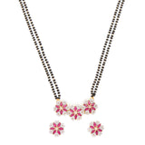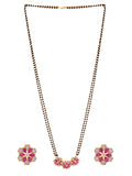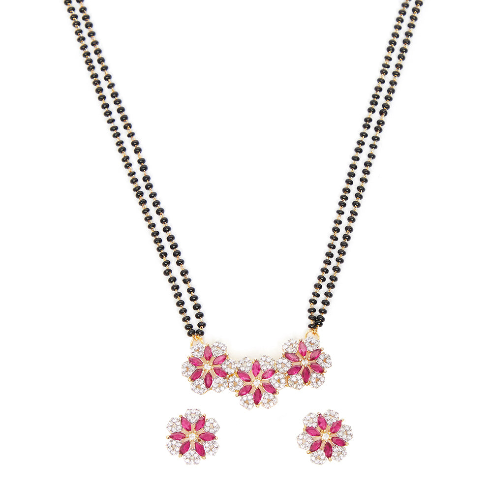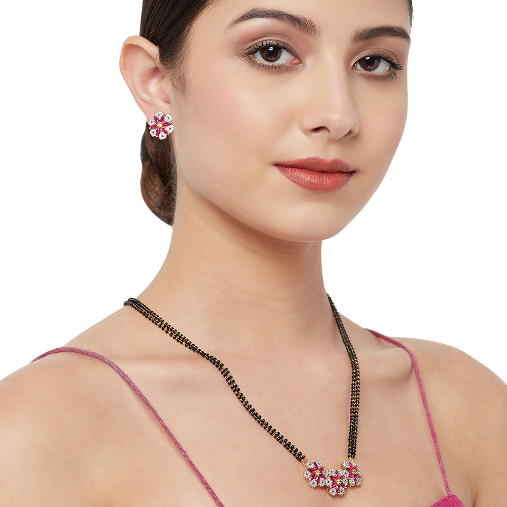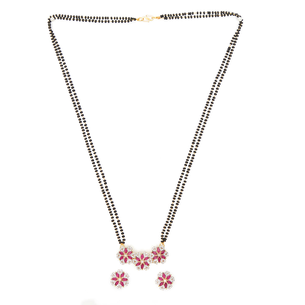 Shimmering Floret American Diamond CZ Gold Plated Brass Black Beaded Mangalsutra with Earrings