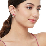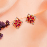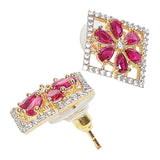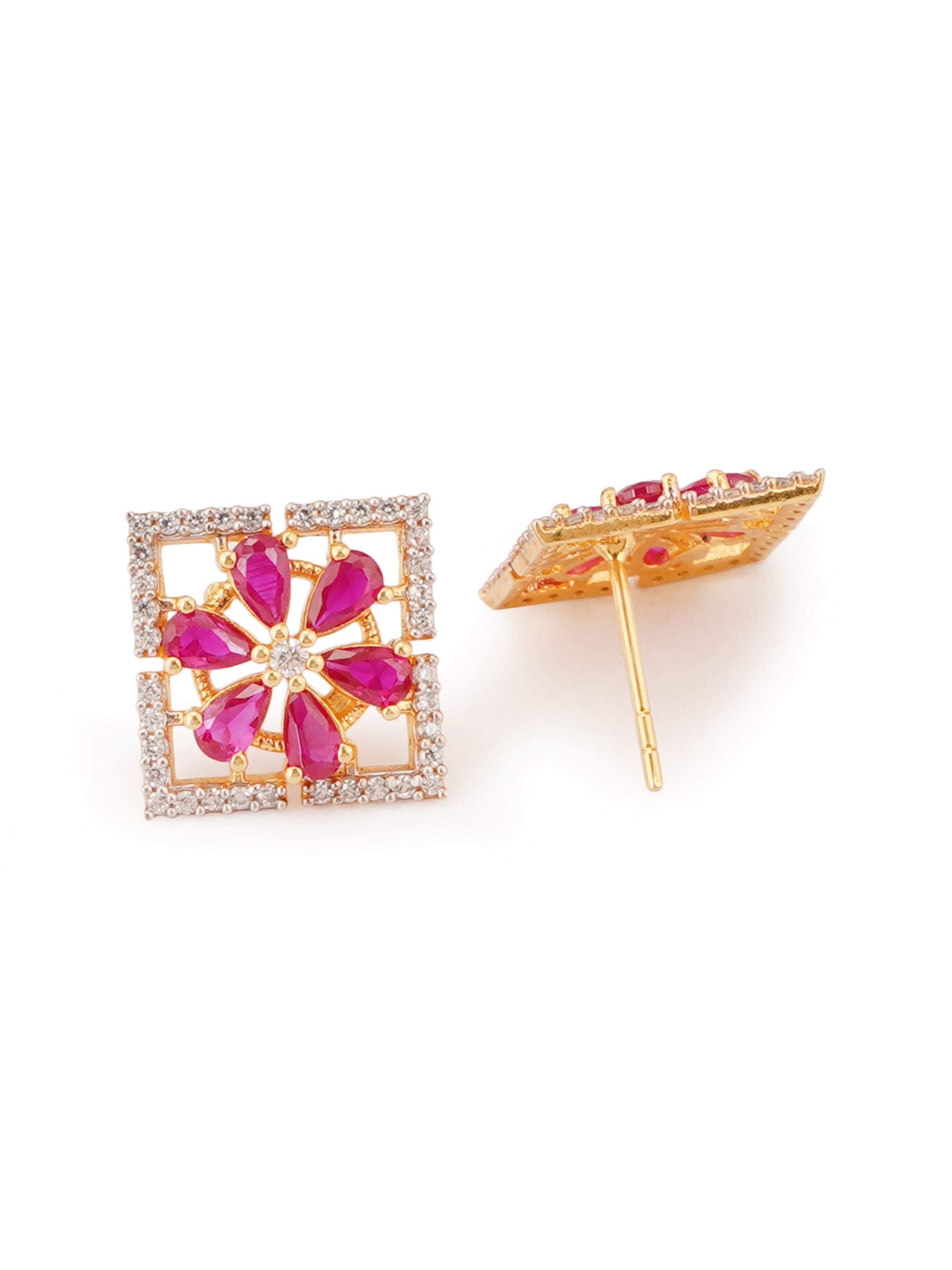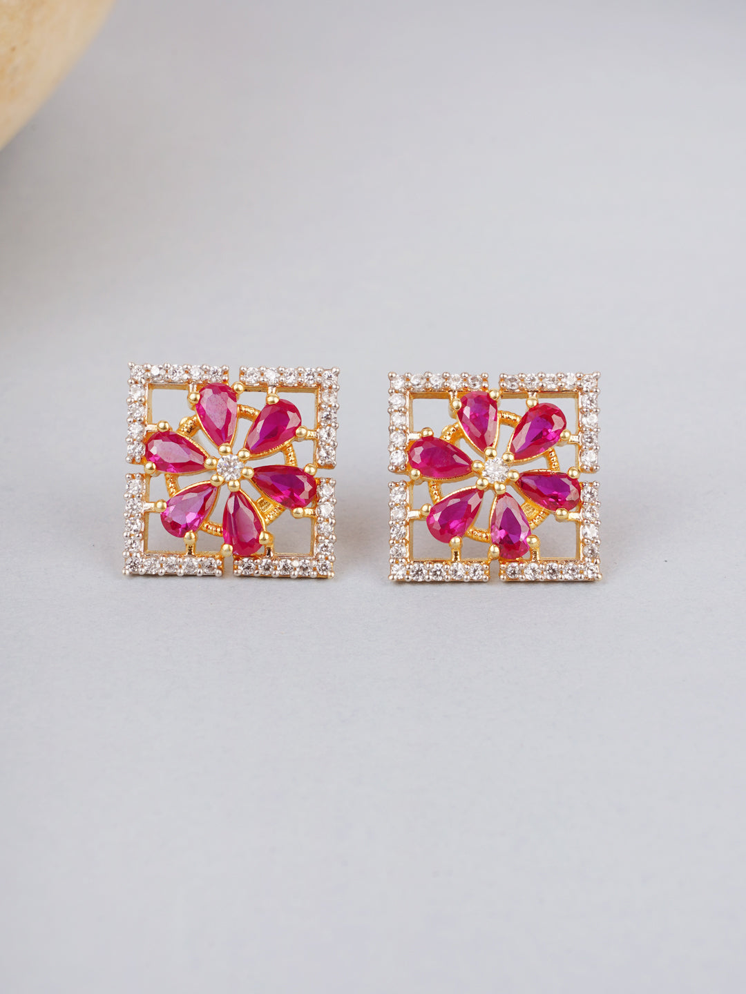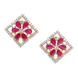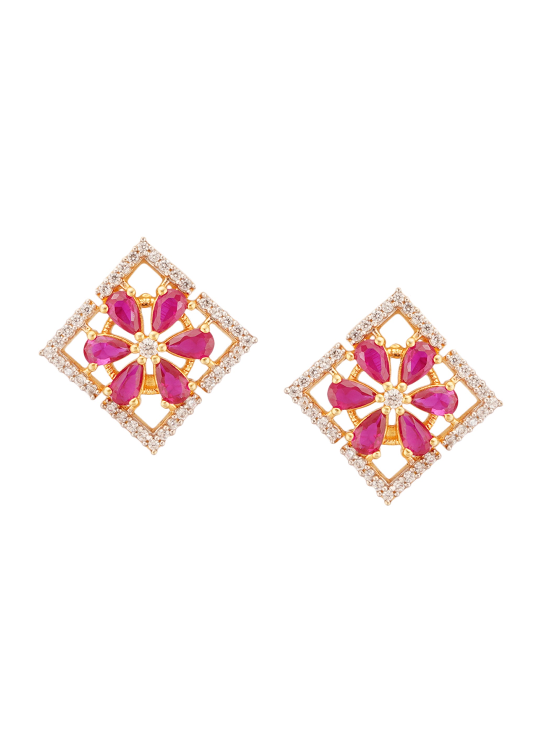 Shimmering Floret American Diamond CZ Gold Plated Brass Stud Earrings
