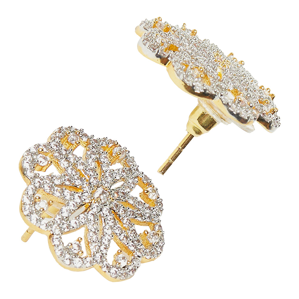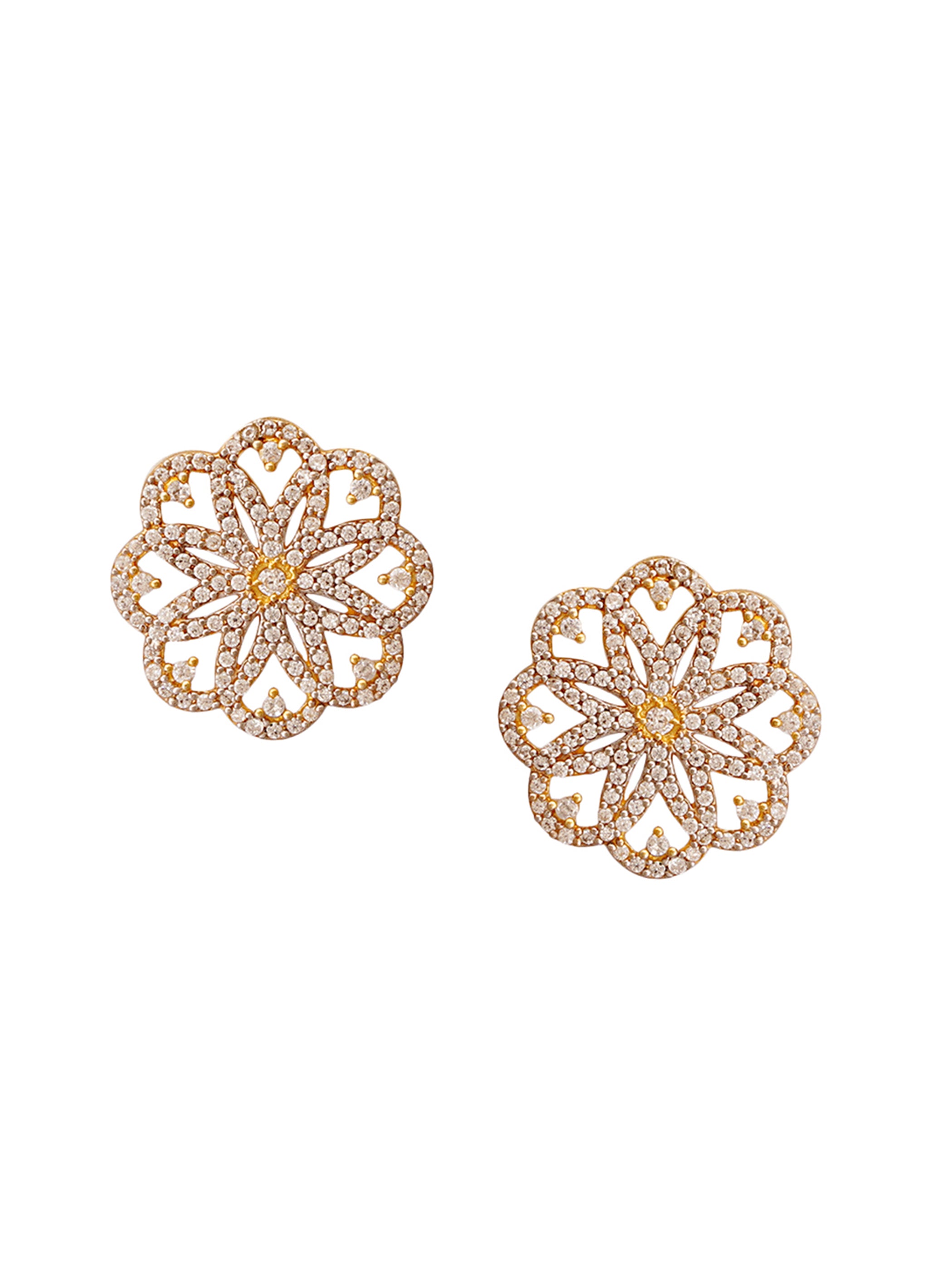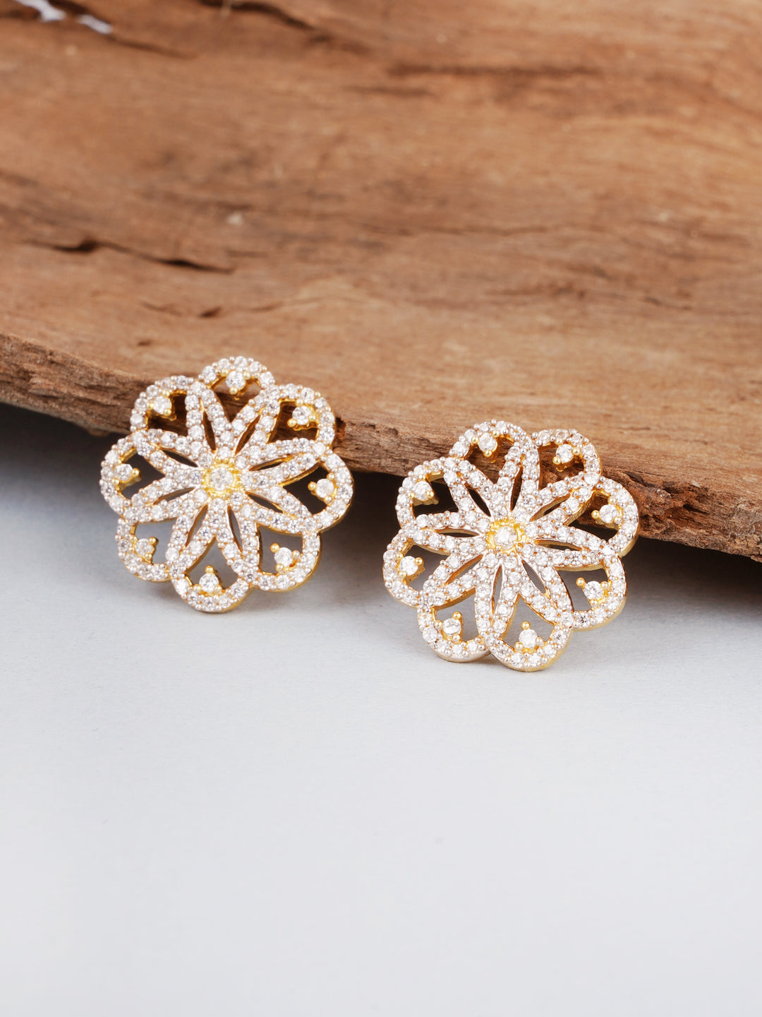 Shimmering Floret American Diamond CZ Golden Plated Silver Stud Earrings