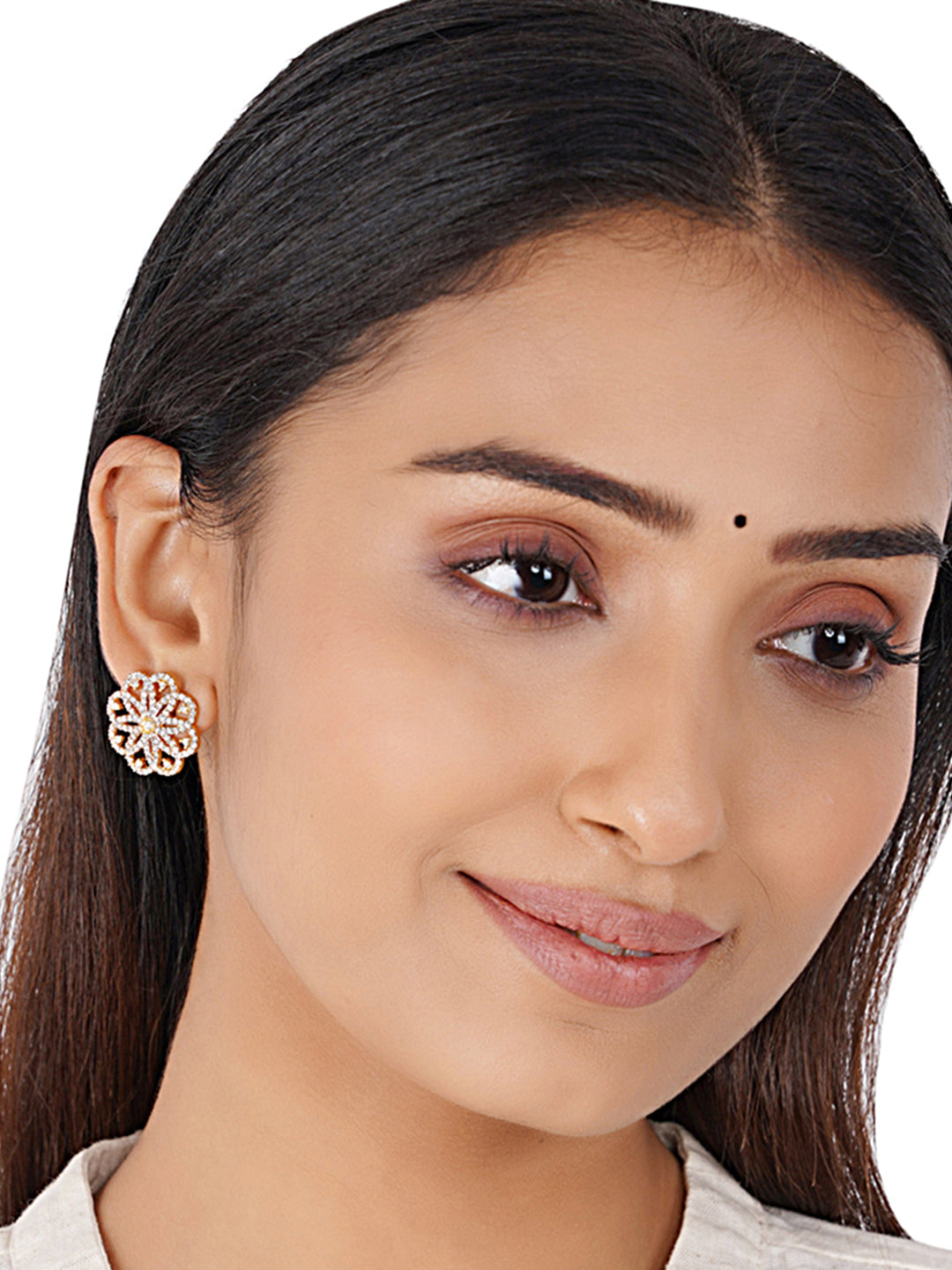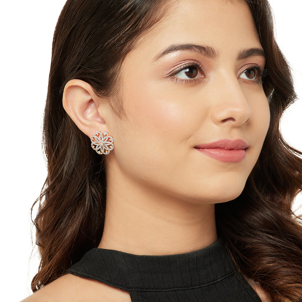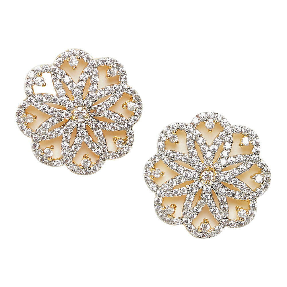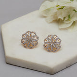Shimmering Floret American Diamond CZ Golden Plated Silver Stud Earrings