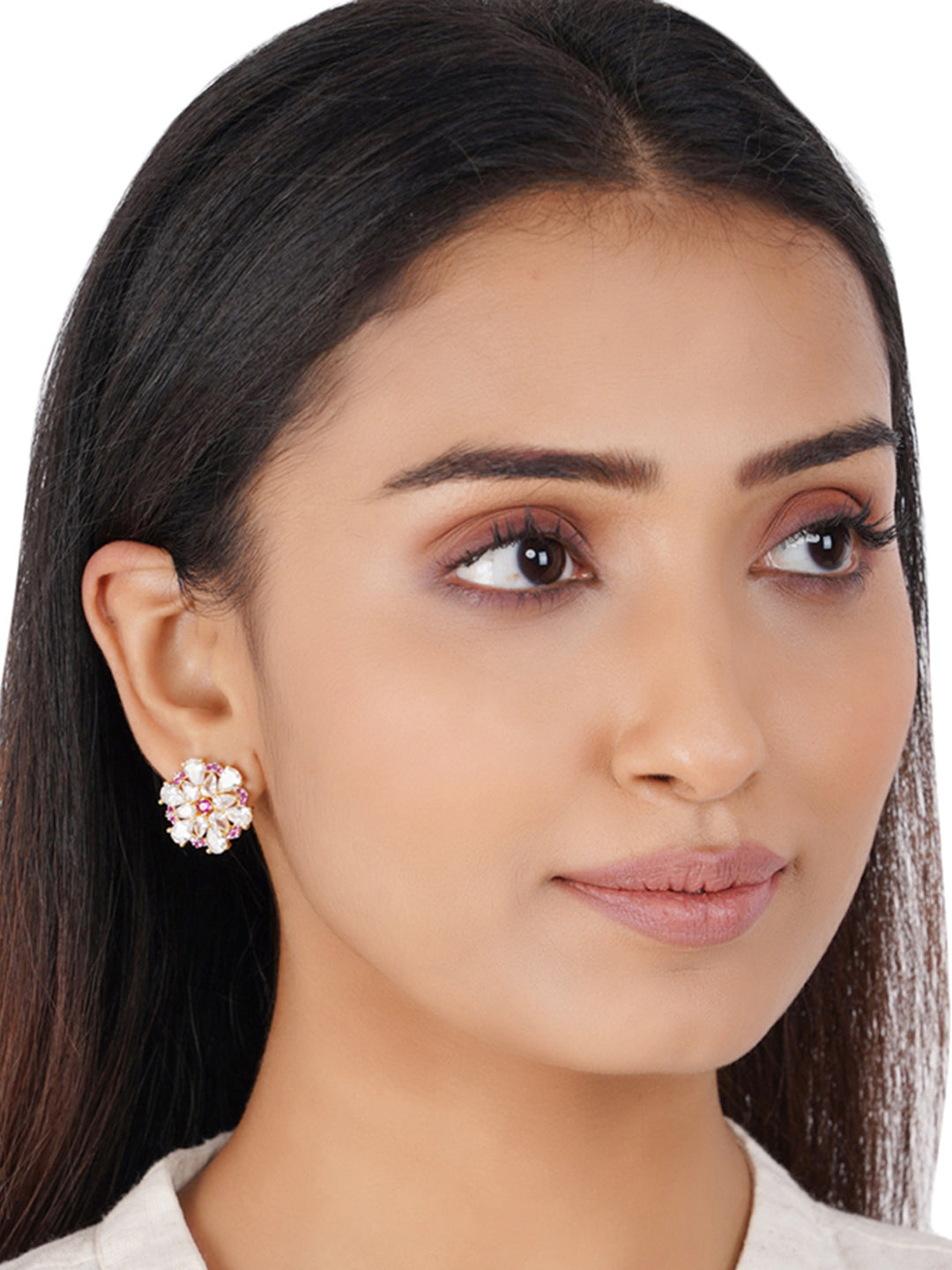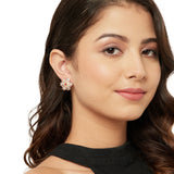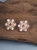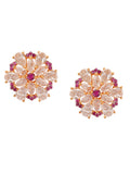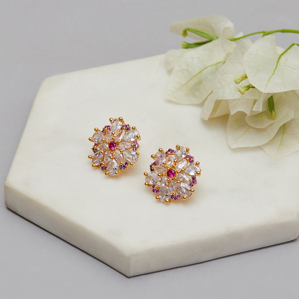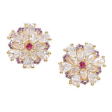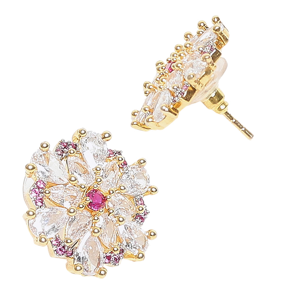Shimmering Floret American Diamond CZ Gold Plated Brass Spiral Stud Earrings
