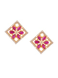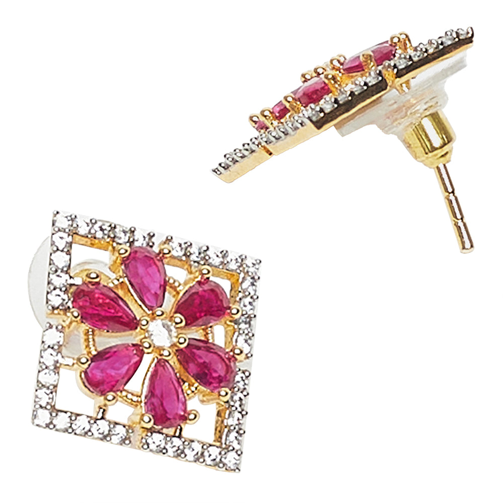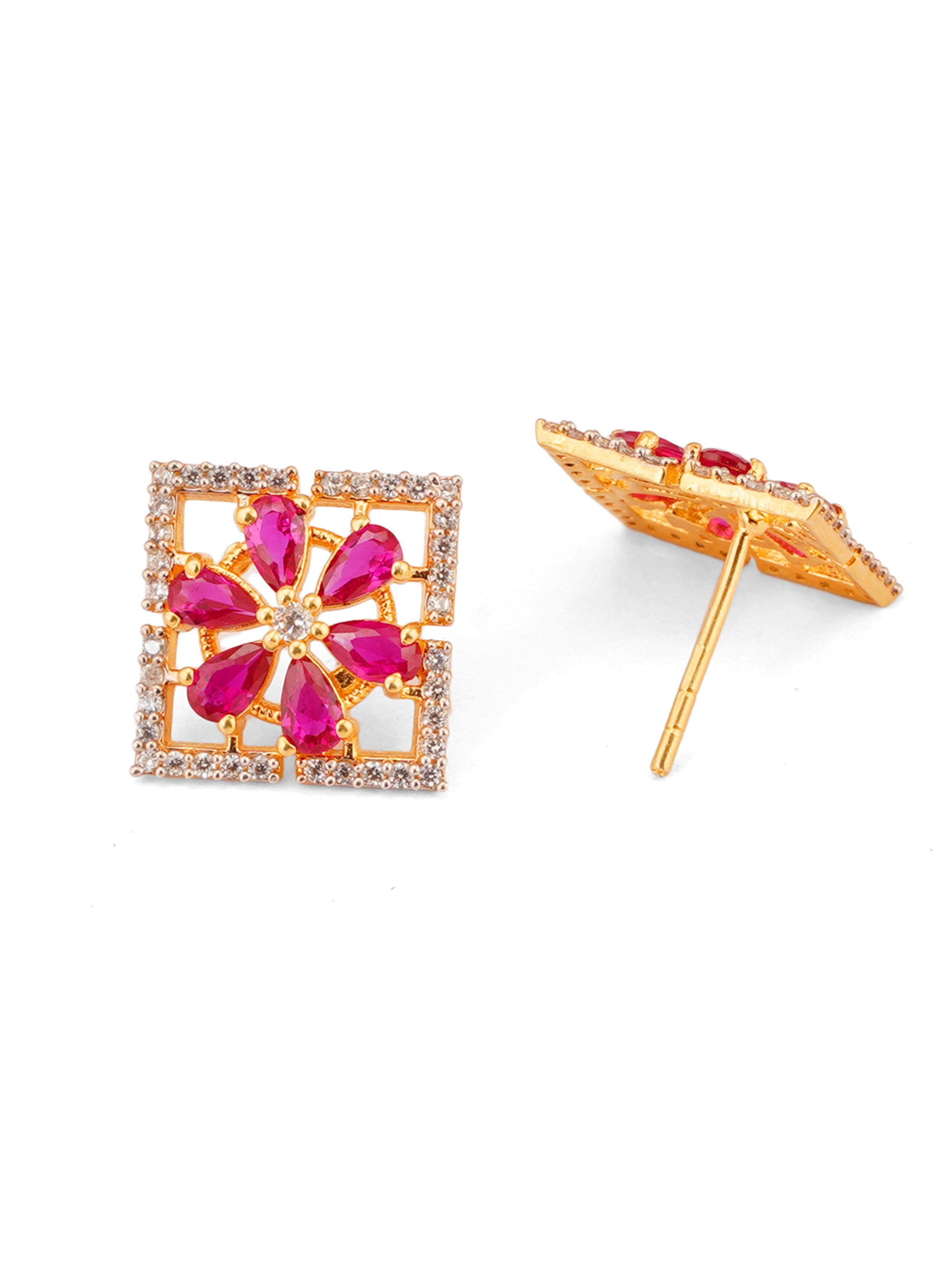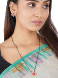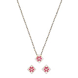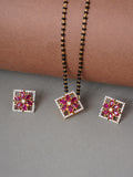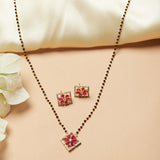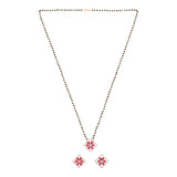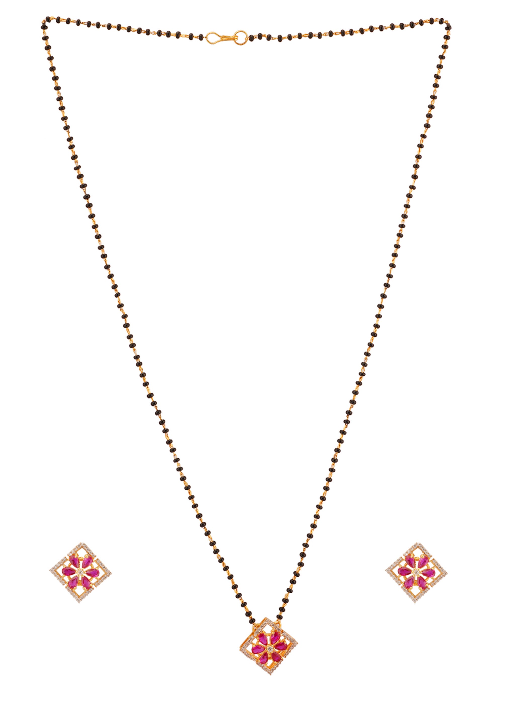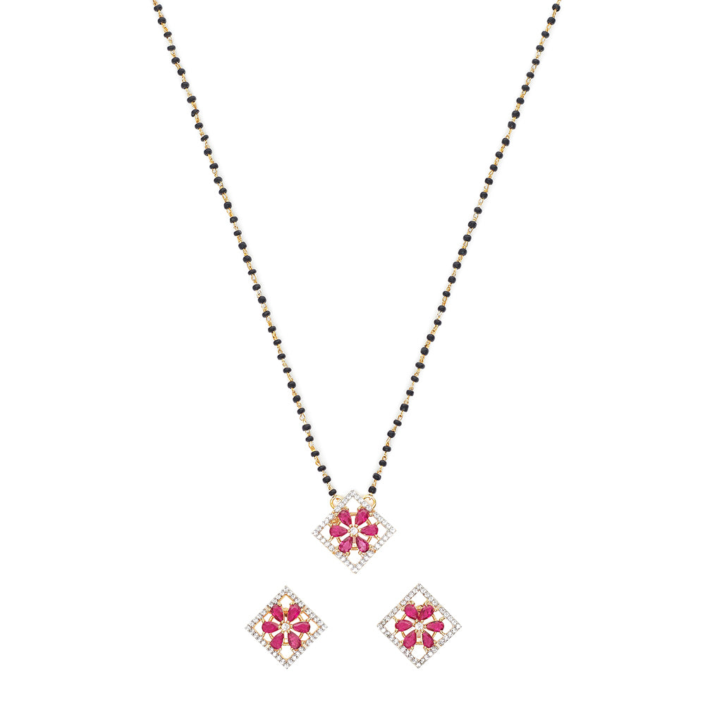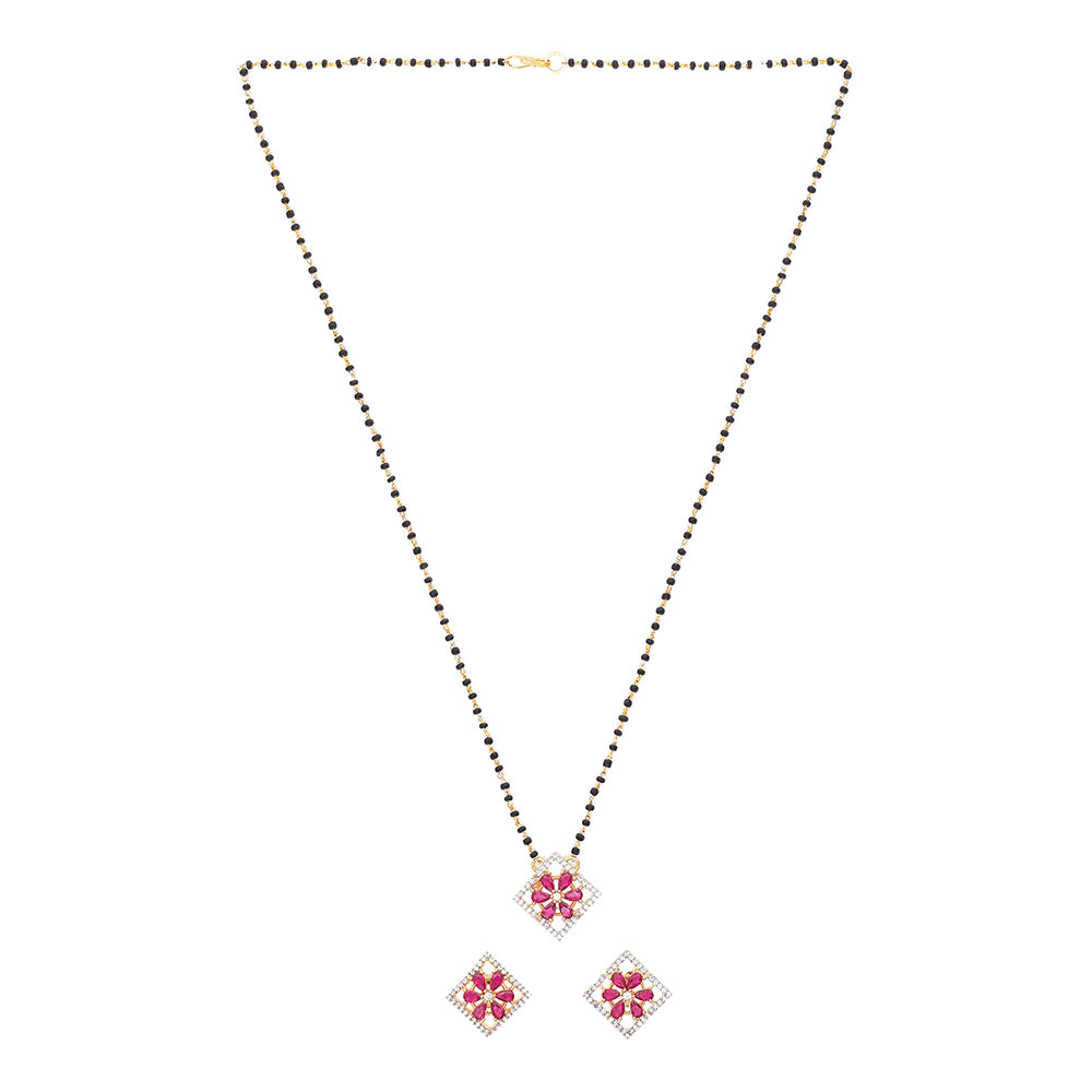 Shimmering Floret American Diamond CZ Gold Plated Brass Black Beaded Mangalsutra with Earrings
