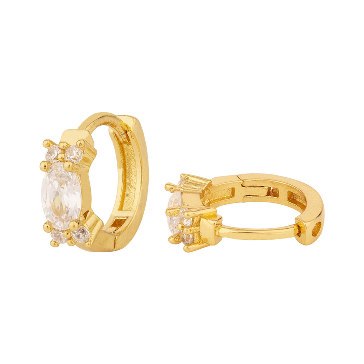 Oval cut CZ gem adorned brass earrings with yellow gold plating. Wear with an ethnic skirt. This piece of jewelry comes with the Voylla assurance of quality and durability. Caring for your fashion jewelry: We, at Voylla, take care of every piece of jewelry so that you don't spend hours caring for them.