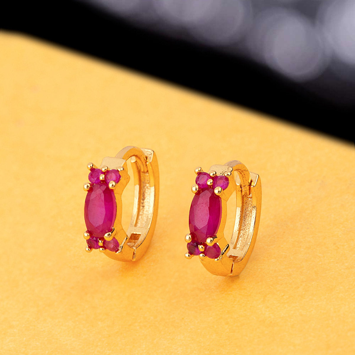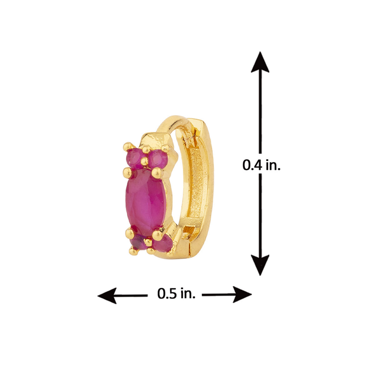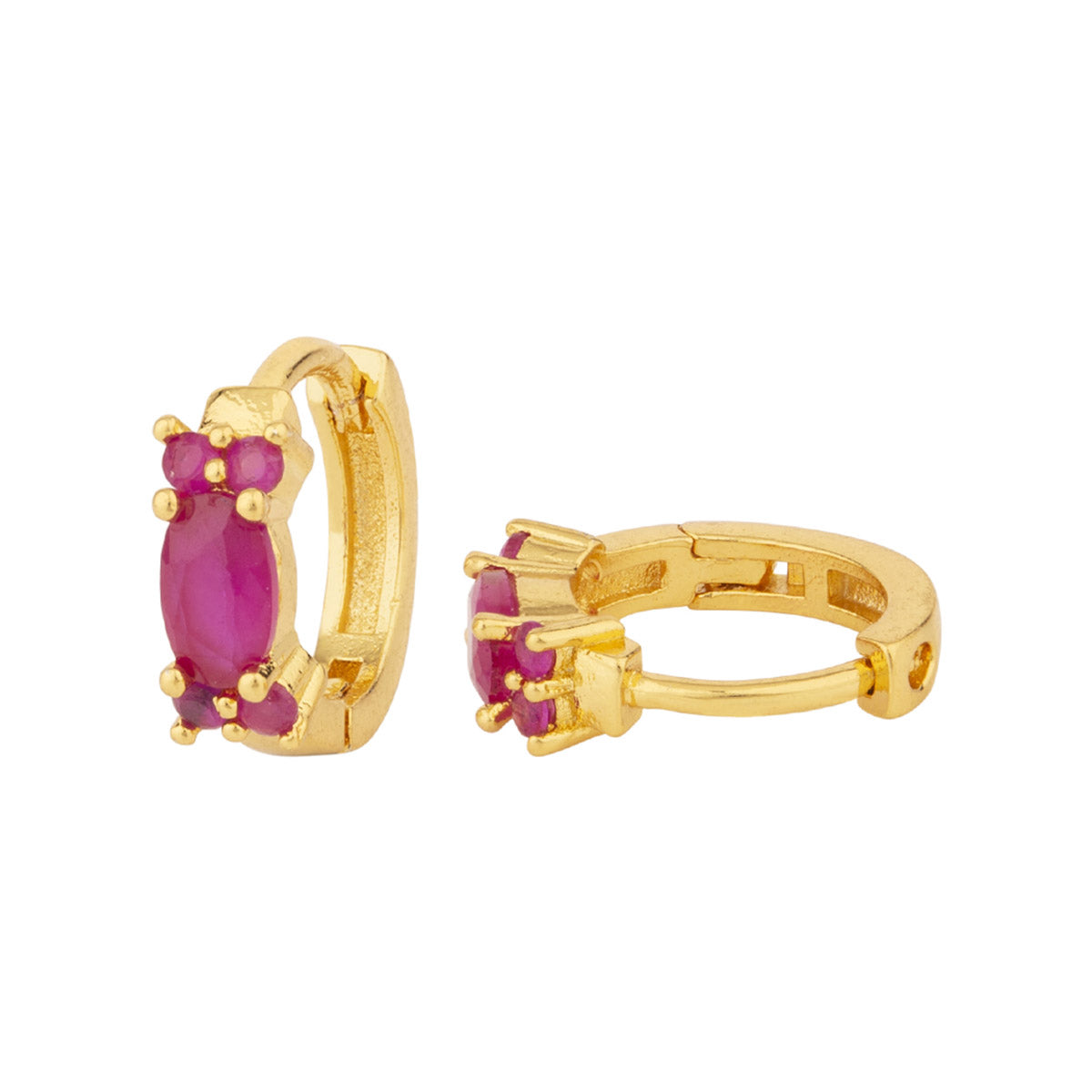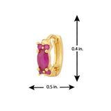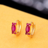 Red oval cut zircon gem adorned brass earrings. Yellow gold plated, lightweight and good for everyday wear.