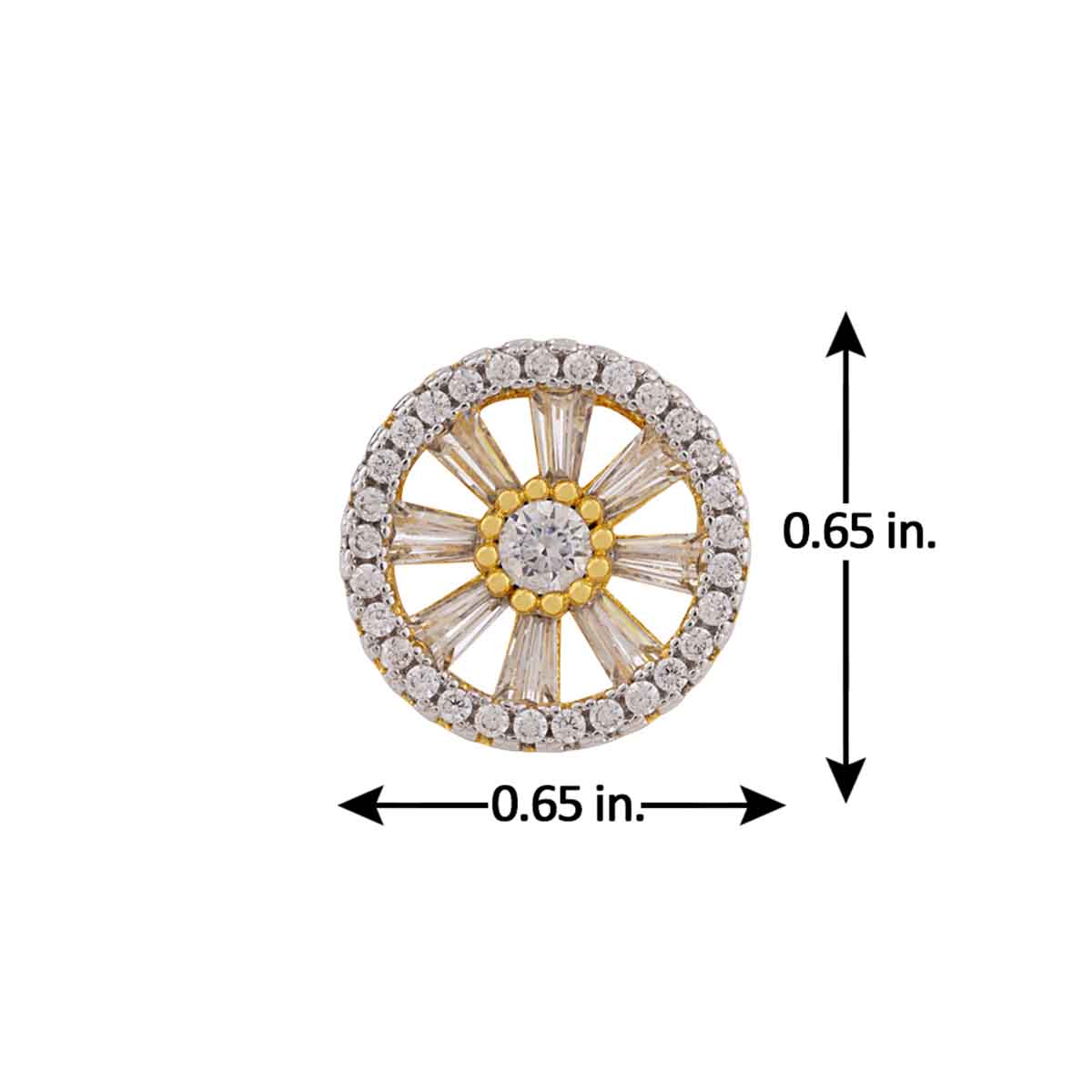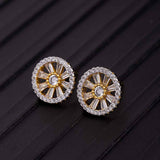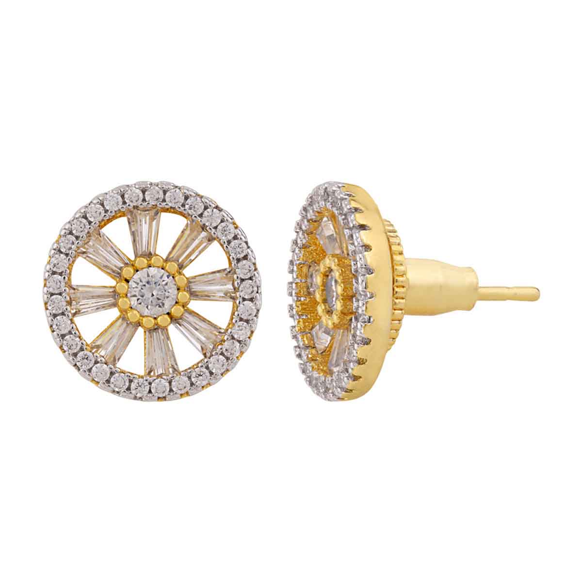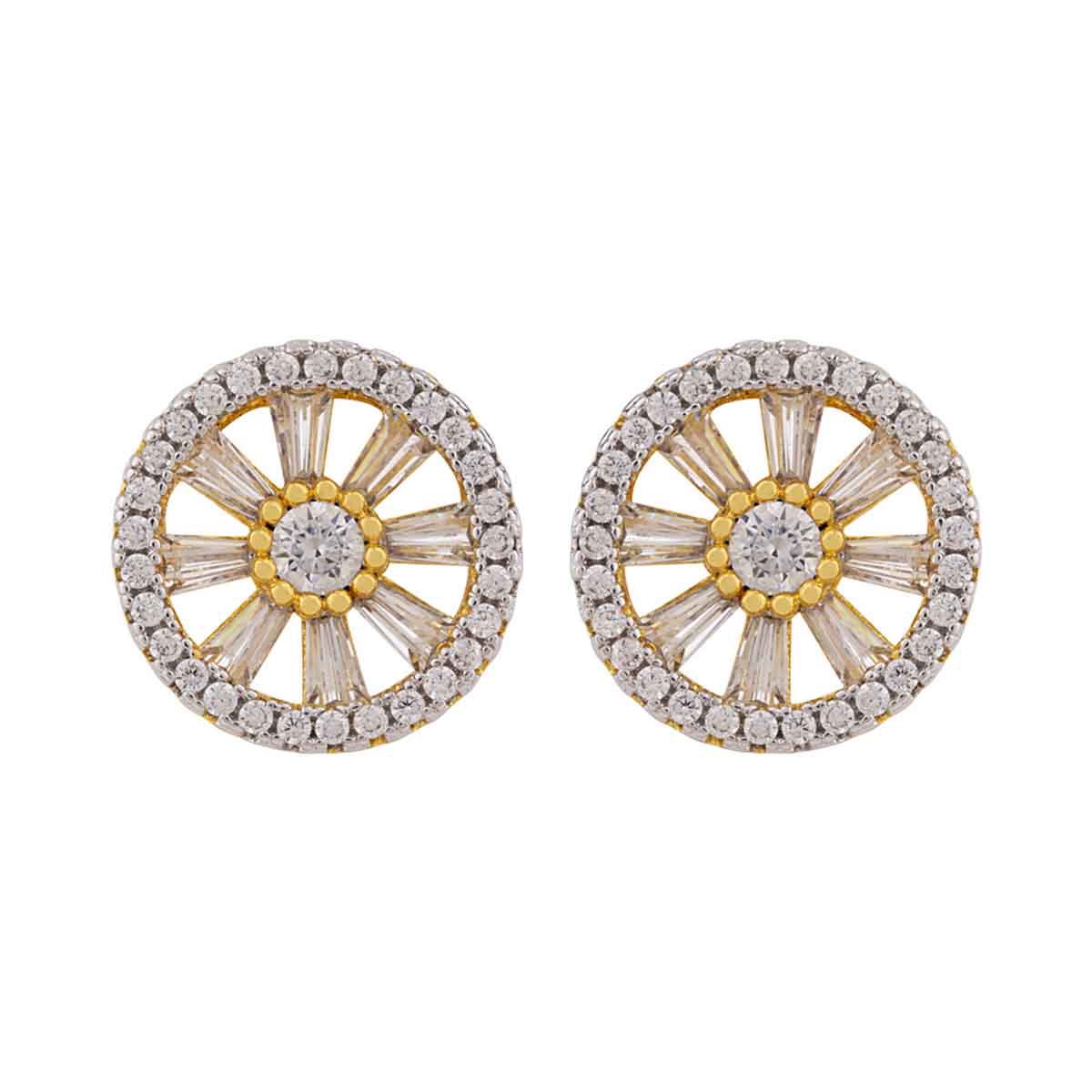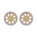 Spokes and wheels stud earrings made from brass and dual tone plated. Zircons embellished and perfect for everyday wear.
