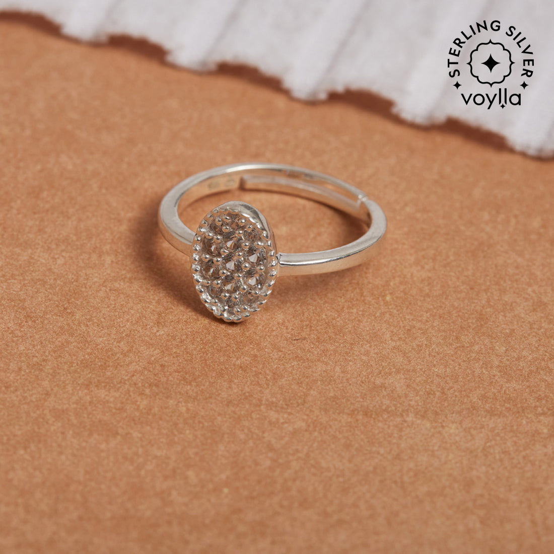 CZ Stone Beaded 925 Sterling Silver Adjustable Ring