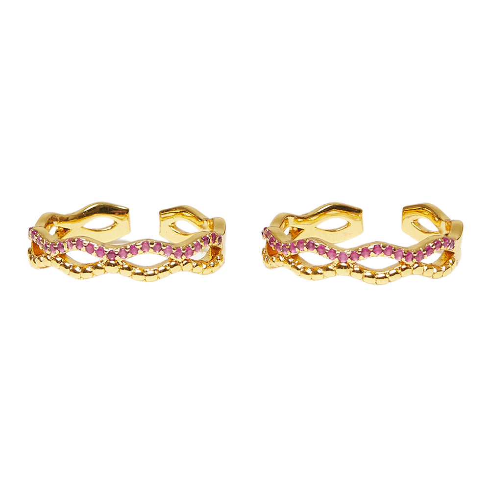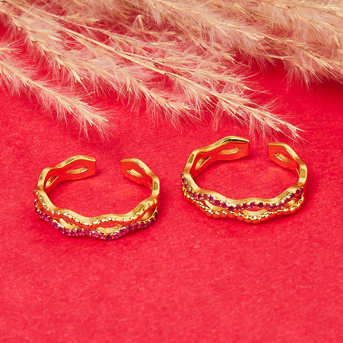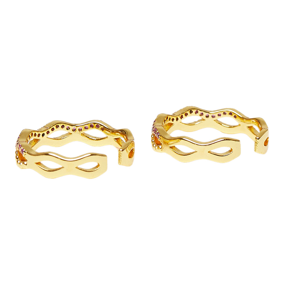 CZ gemstones adorned adjustable toe rings. Made from brass and yellow gold plated. Wear with ethnic attire.