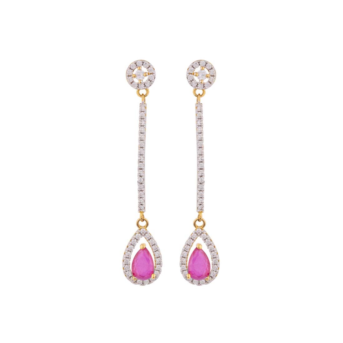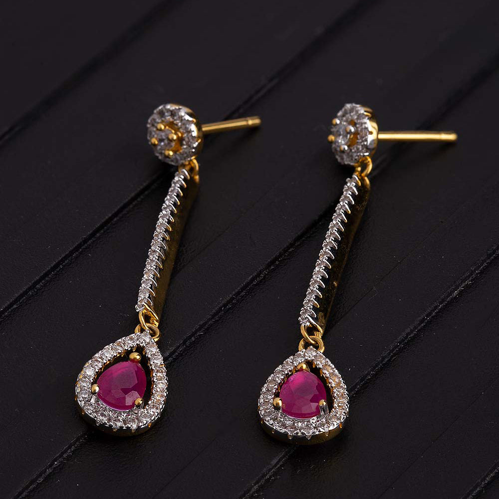 Vintage inspired drop earrings with two tone plating. Brass has been used in the making of these zircon adorned earrings, which will look splendid with party outfits.