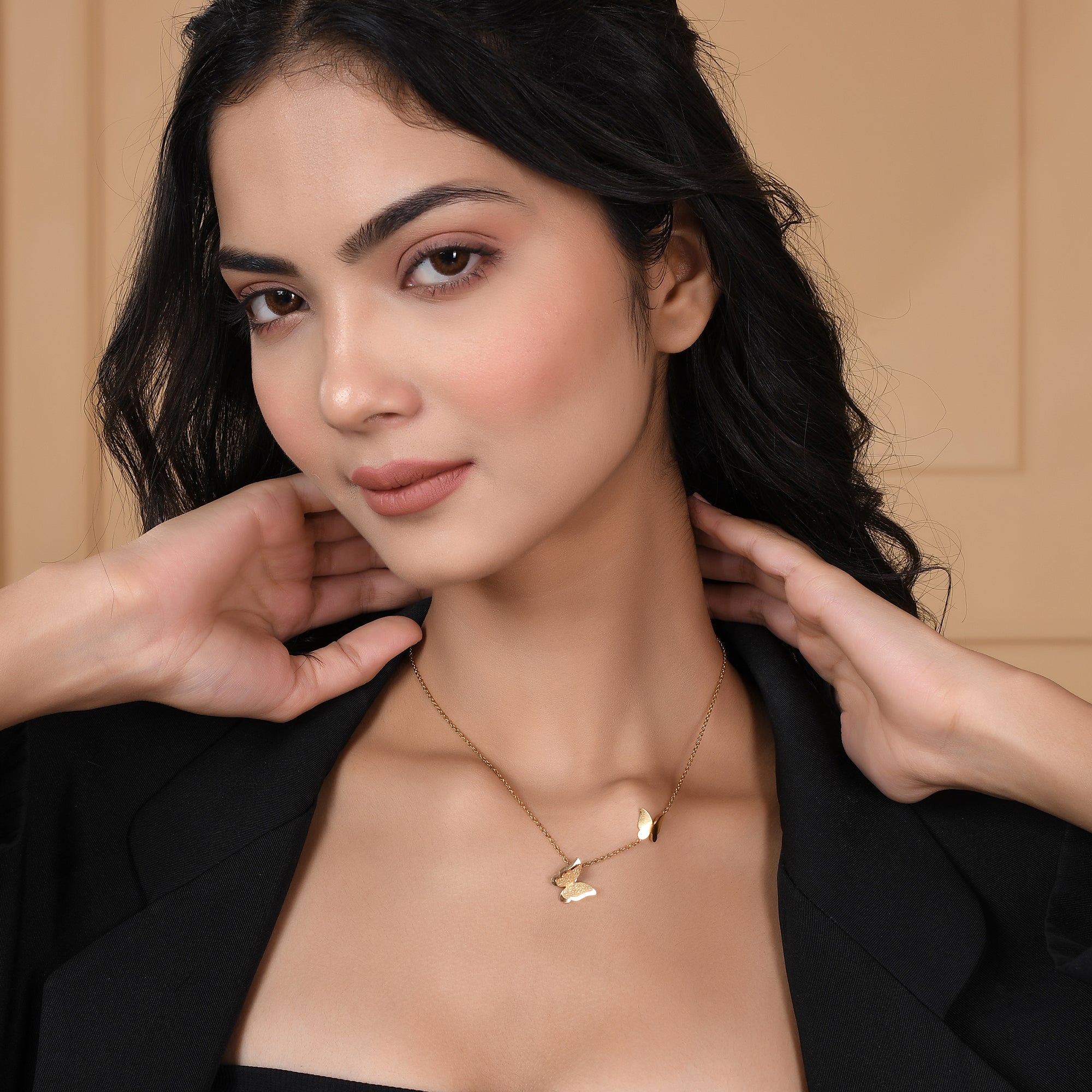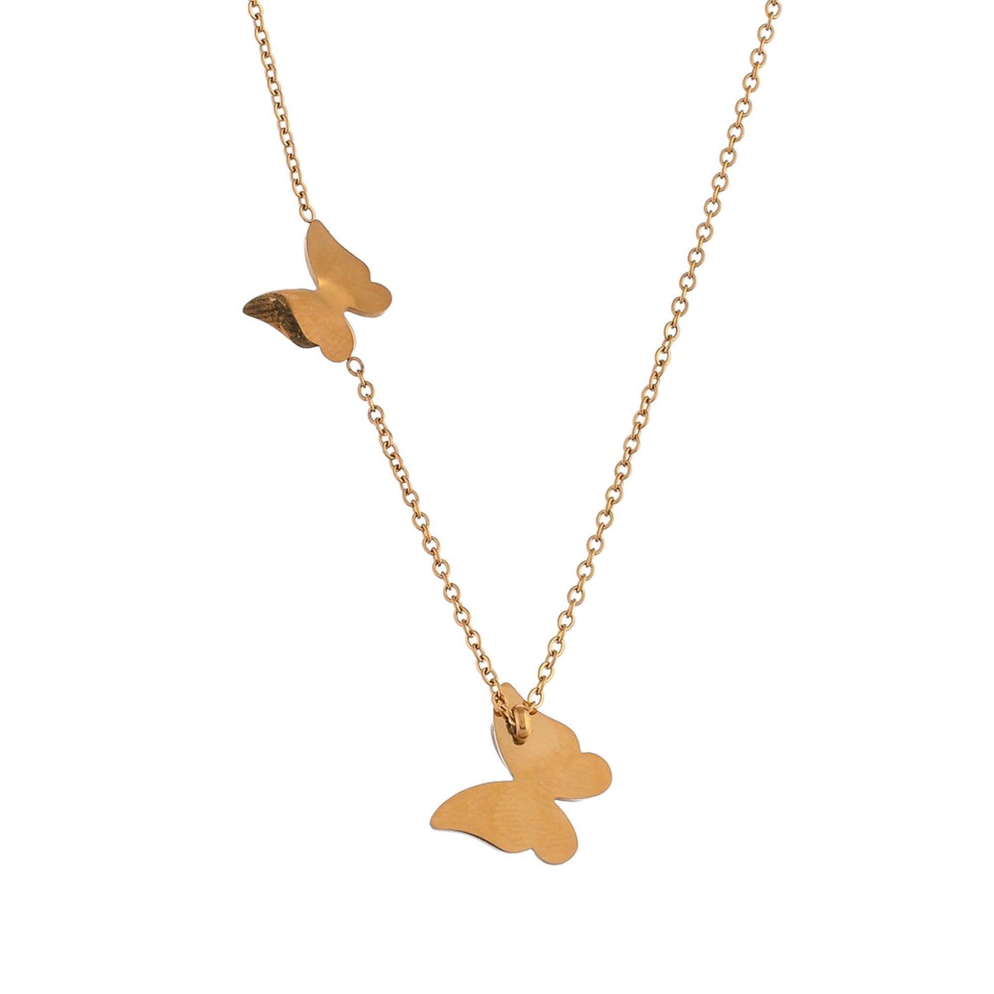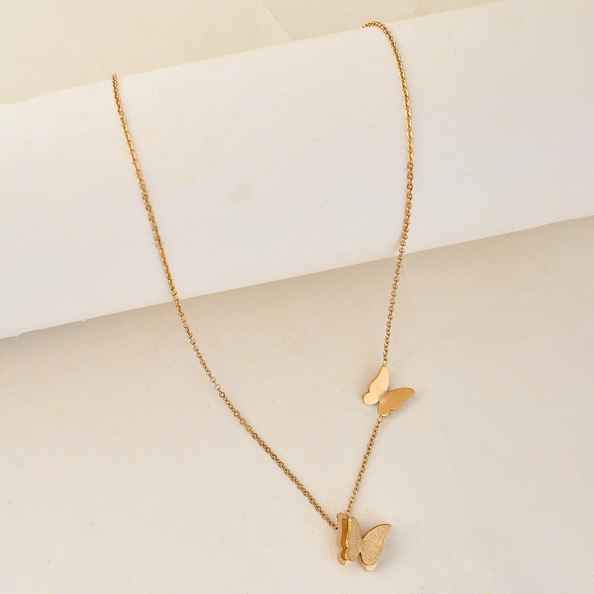 Dainty 2 Fluttering Butterfly Gold Plated Charm Necklace