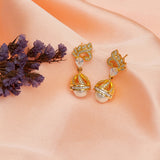These lovely gold plated earrings set in a beautiful ethnic design, are a must-have if you love traditional jewelry. Decorated with a unique and delicate pattern, these perfectly crafted drop earrings will definitely add a brilliant sparkle to every traditional or Indo-Western outfit that you wear them with. While these brass earrings go well with just about everything, they will look exceptionally pretty with casual kurtas.