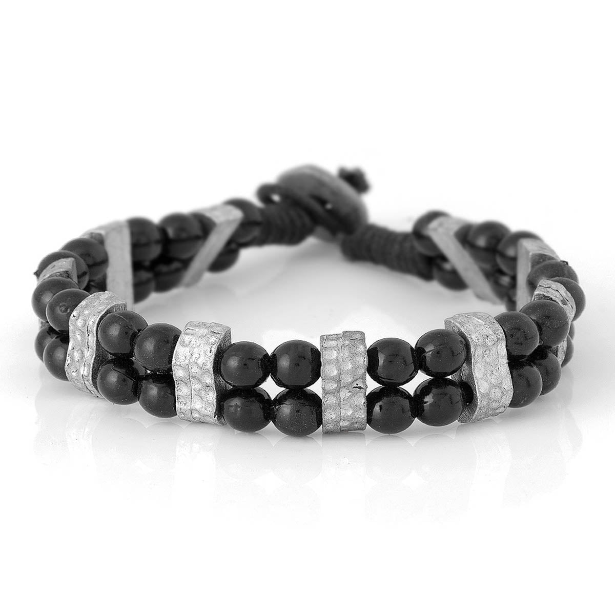 Amp up your look with this classy black beaded bracelet that will enhance your look instantly. This bracelet will look splendid no matter what you wear it with. To make your accessories last longer avoid harsh chemicals and moisture. Keep dry, clean with dry cloth and wear with panache. "From the House of Voylla, India's largest fashion jewelry brand comes DARE, a line of handcrafted accessories for the modern Indian man. "