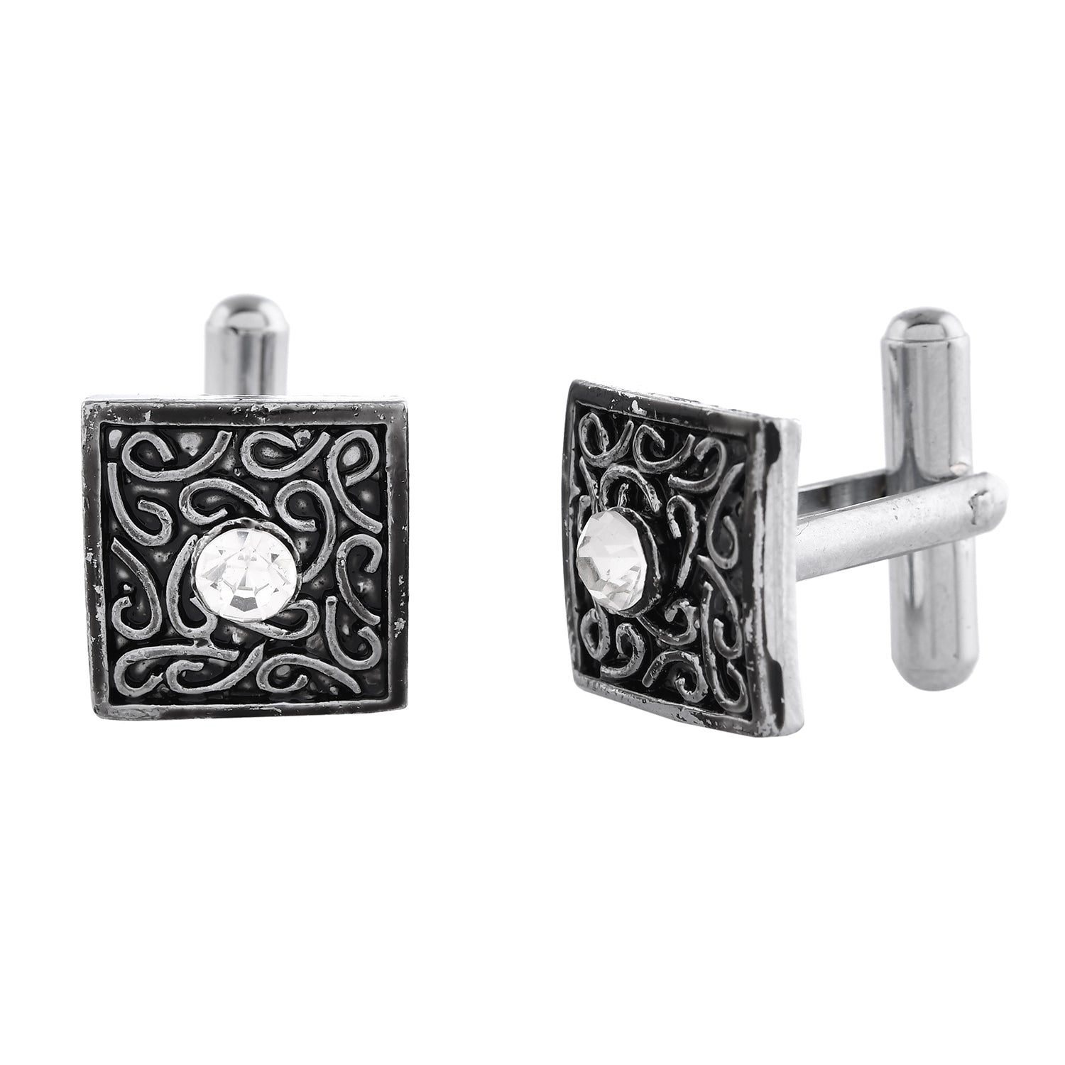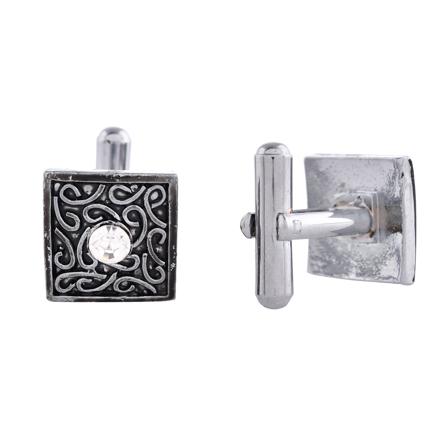 Elevate your style with Voylla's Dark Elegance Men's Cufflinks, an exquisite piece from The Gentleman’s Club collection. These statement cufflinks are meticulously crafted from high-quality alloy, plated with white rhodium, ensuring durability and a lustrous finish. The intricate design showcases a central American diamond, set against a sophisticated black and silver color scheme, embodying a contemporary chic look. These versatile cufflinks are perfect for various occasions, from weddings and parties to corporate events, adding a touch of elegance to your formal and festive attire. Ideal as a gift for special occasions such as Valentine's Day, Diwali, Rakshabandhan, Christmas, and New Year, these cufflinks make a timeless and thoughtful present for fathers, husbands, boyfriends, and brothers. With their perfect blend of traditional craftsmanship and modern design, they are a must-have accessory for the modern man who appreciates quality and style.