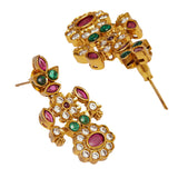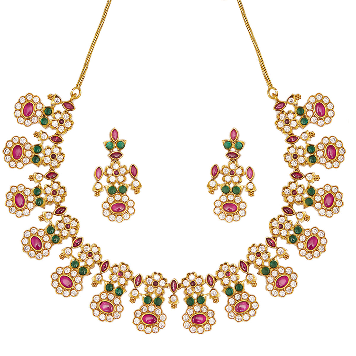 Delicate Floral Motifs CZ Adorned Brass Gold Toned Jewellery Set