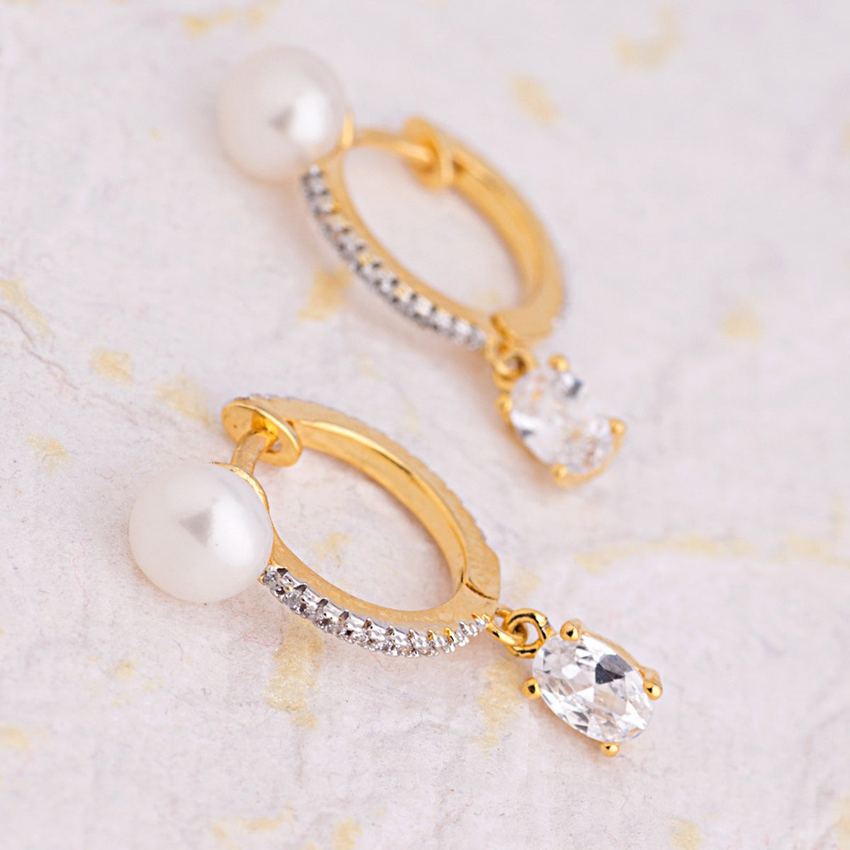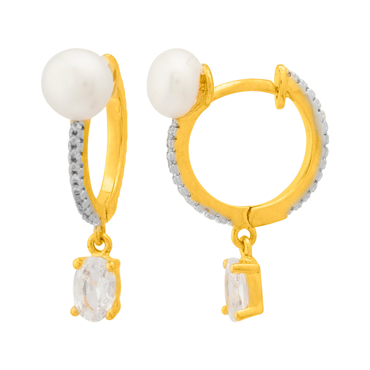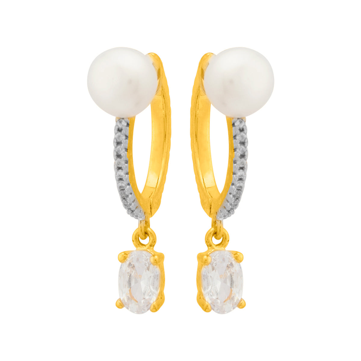 Decked with sparkling CZ gems, this pair of huggie hoop earrings will add oodles of charm to your party or everyday casual look. They are delicate and will give you an ethereal charm. The yellow gold plating with excellent finish will impress you instantly. Made from brass, this lovely pair is durable and skin friendly as well.