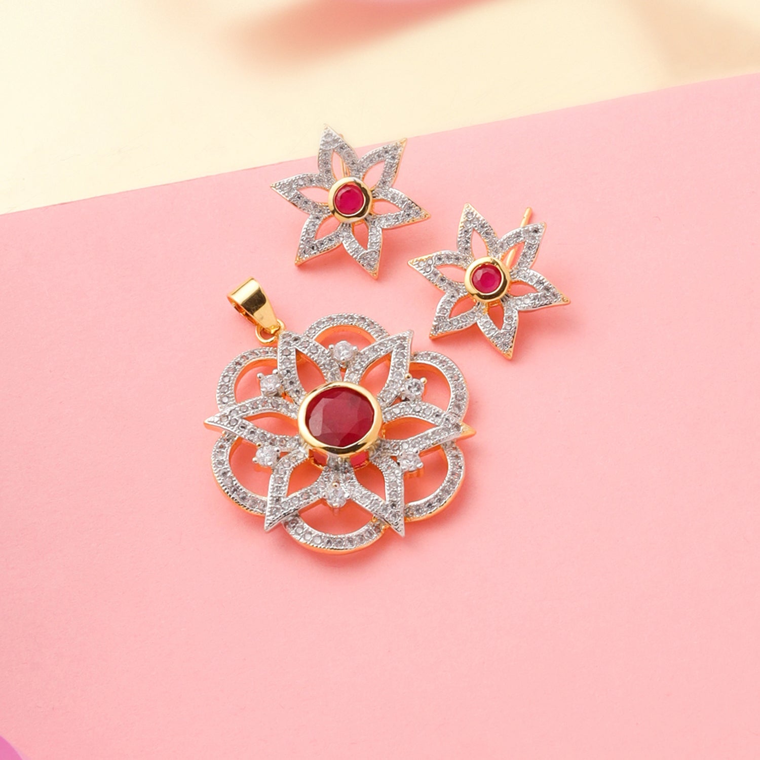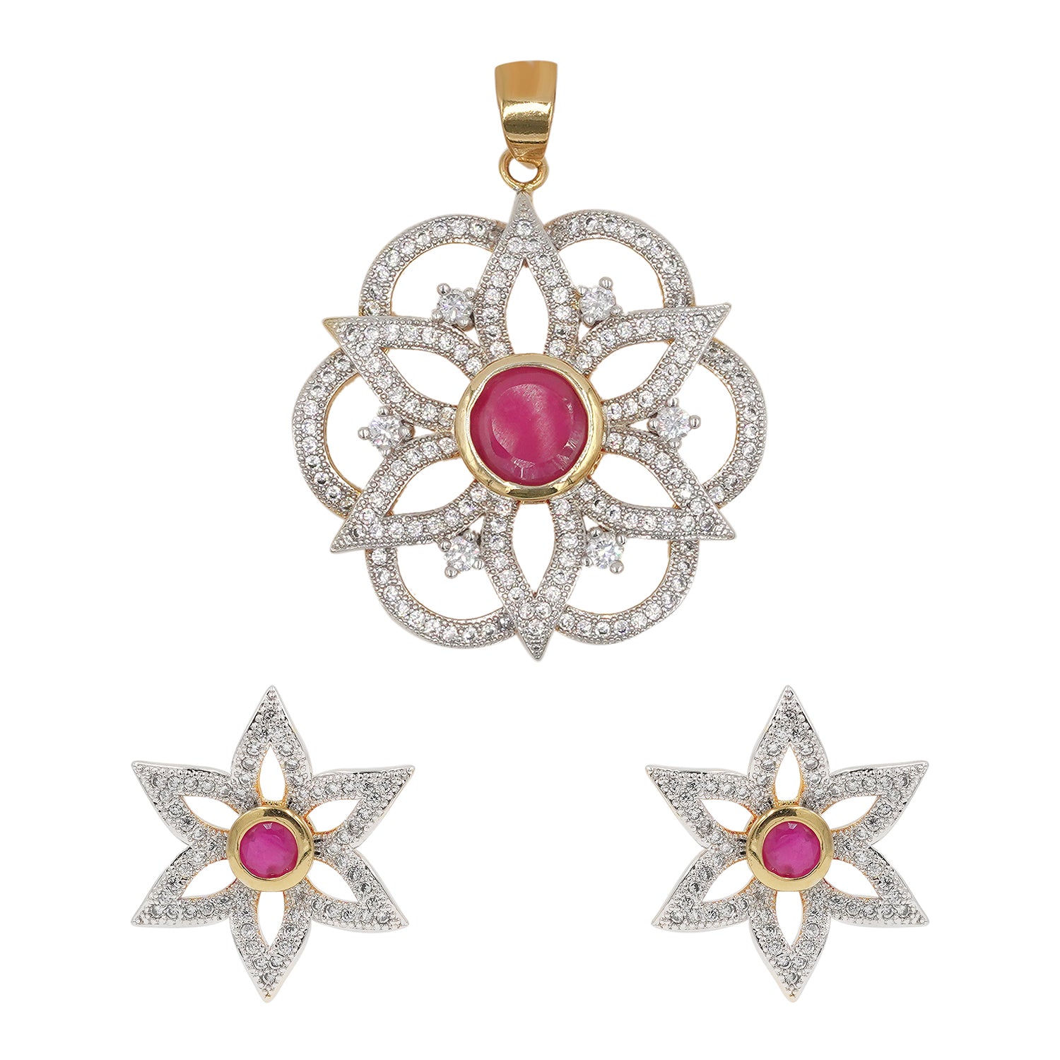 Sparkling Elegance Cluster Setting Zircons Jewellery Set