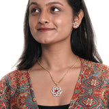 Classic brass jewellery set in an overlapping design. Silver plated and embellished with cluster setting zirconia gemstones. Pair with formal looks.Caring for your fashion jewelry: We, at Voylla, take care of every piece of jewelry so that you don't spend...