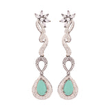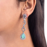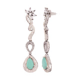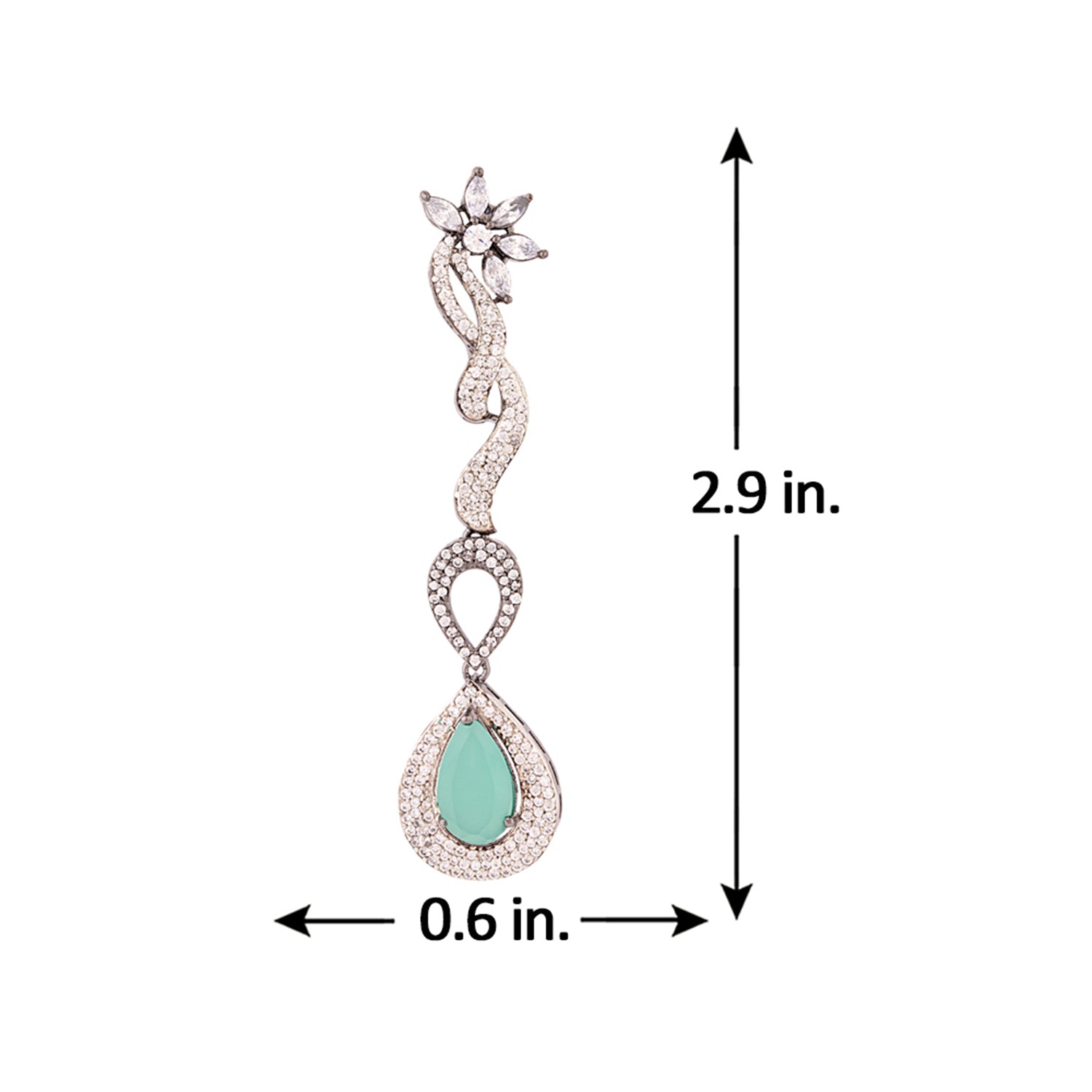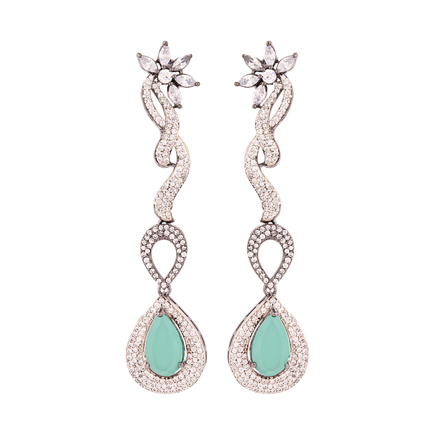 Designer inspired brass earrings with black rhodium plating. Embellished with American Diamond gems and a good match for formal attire.