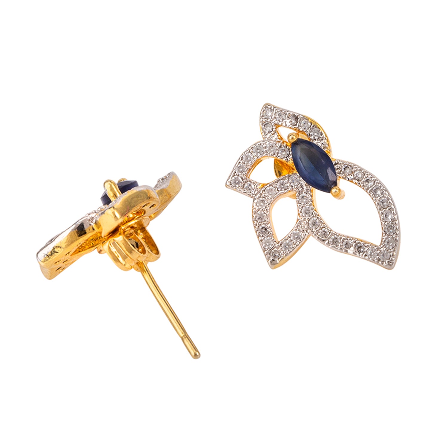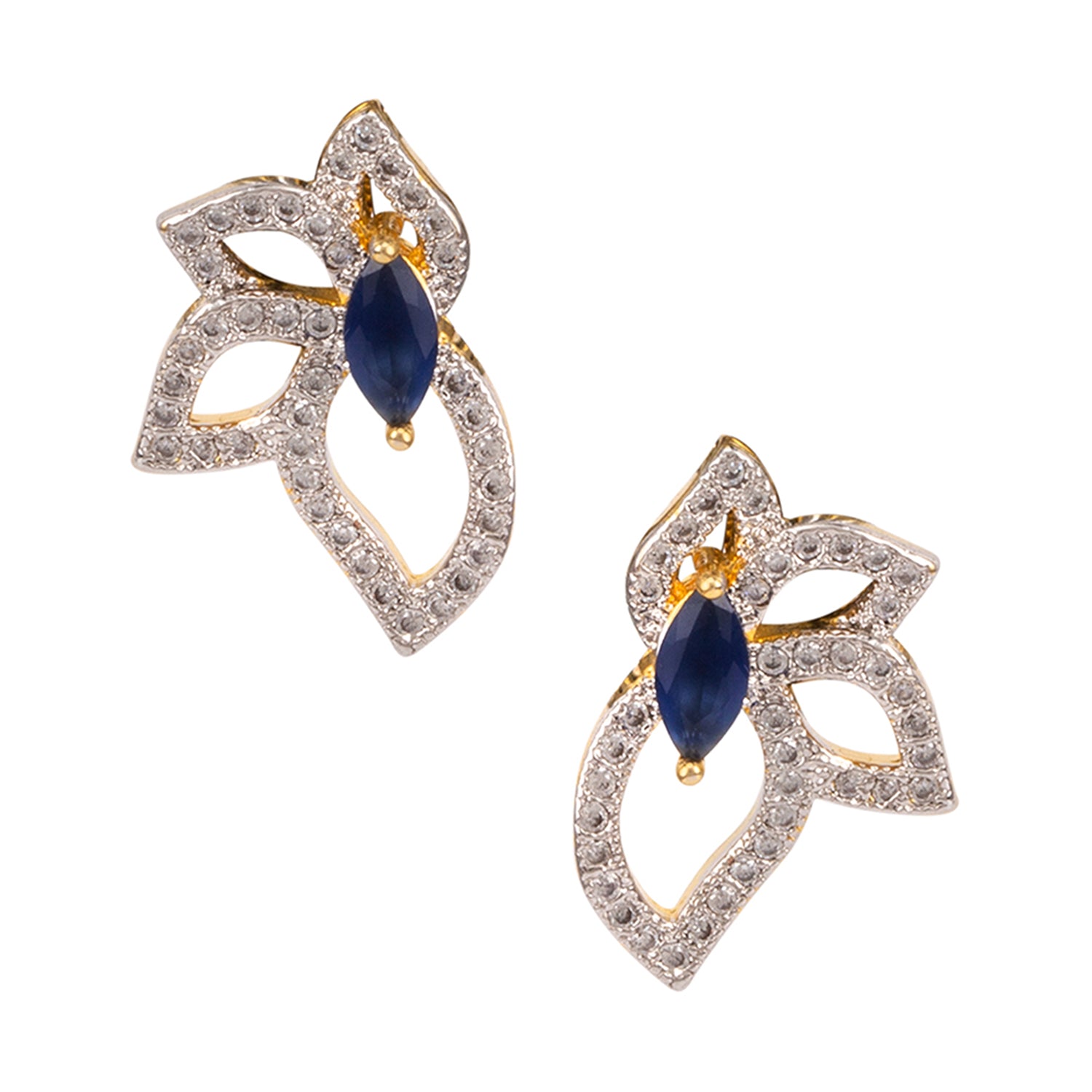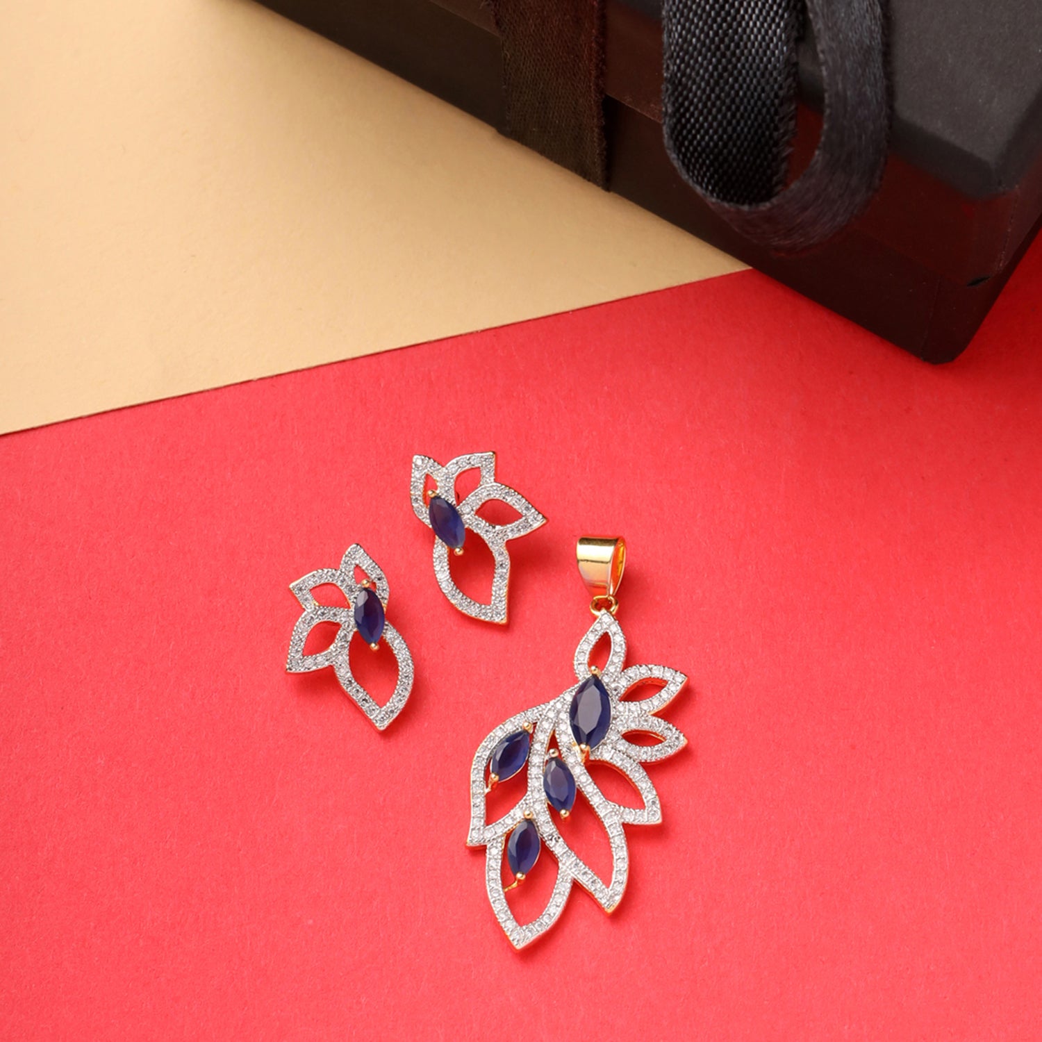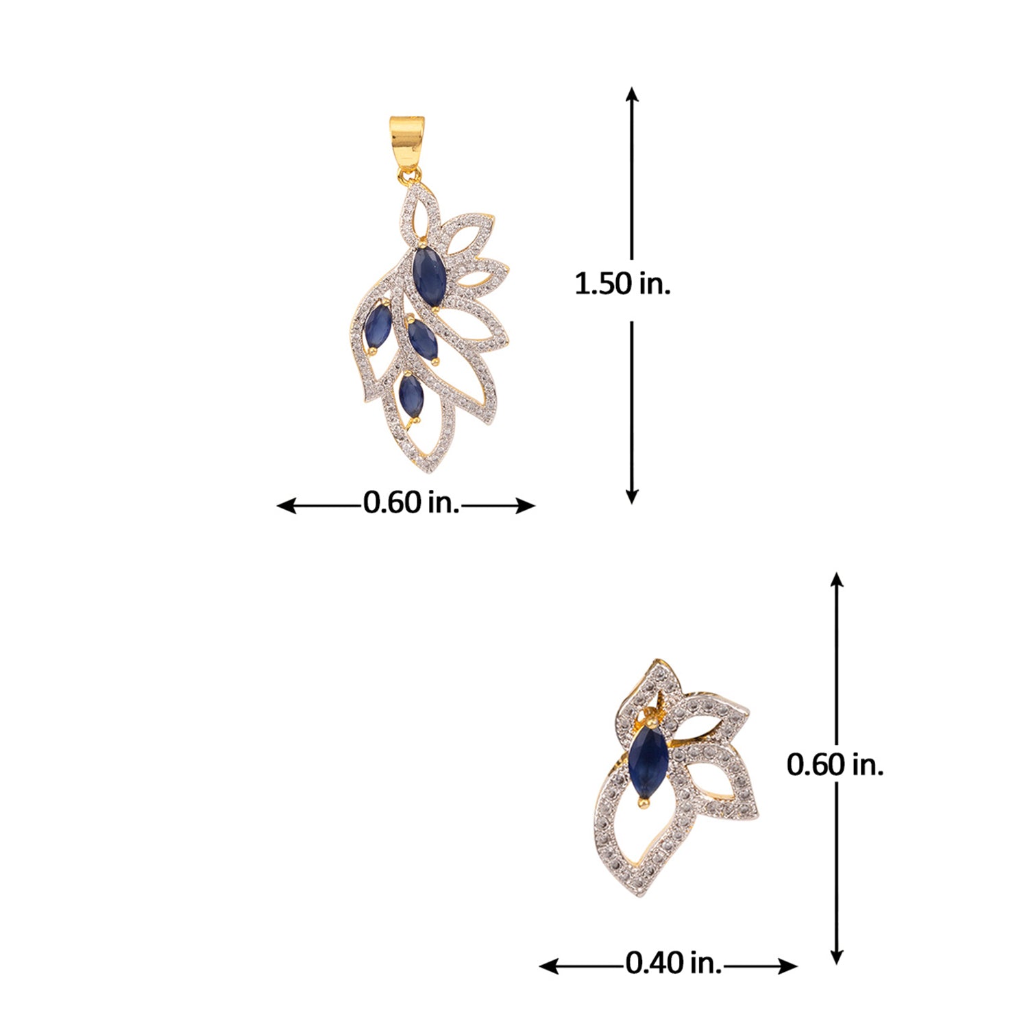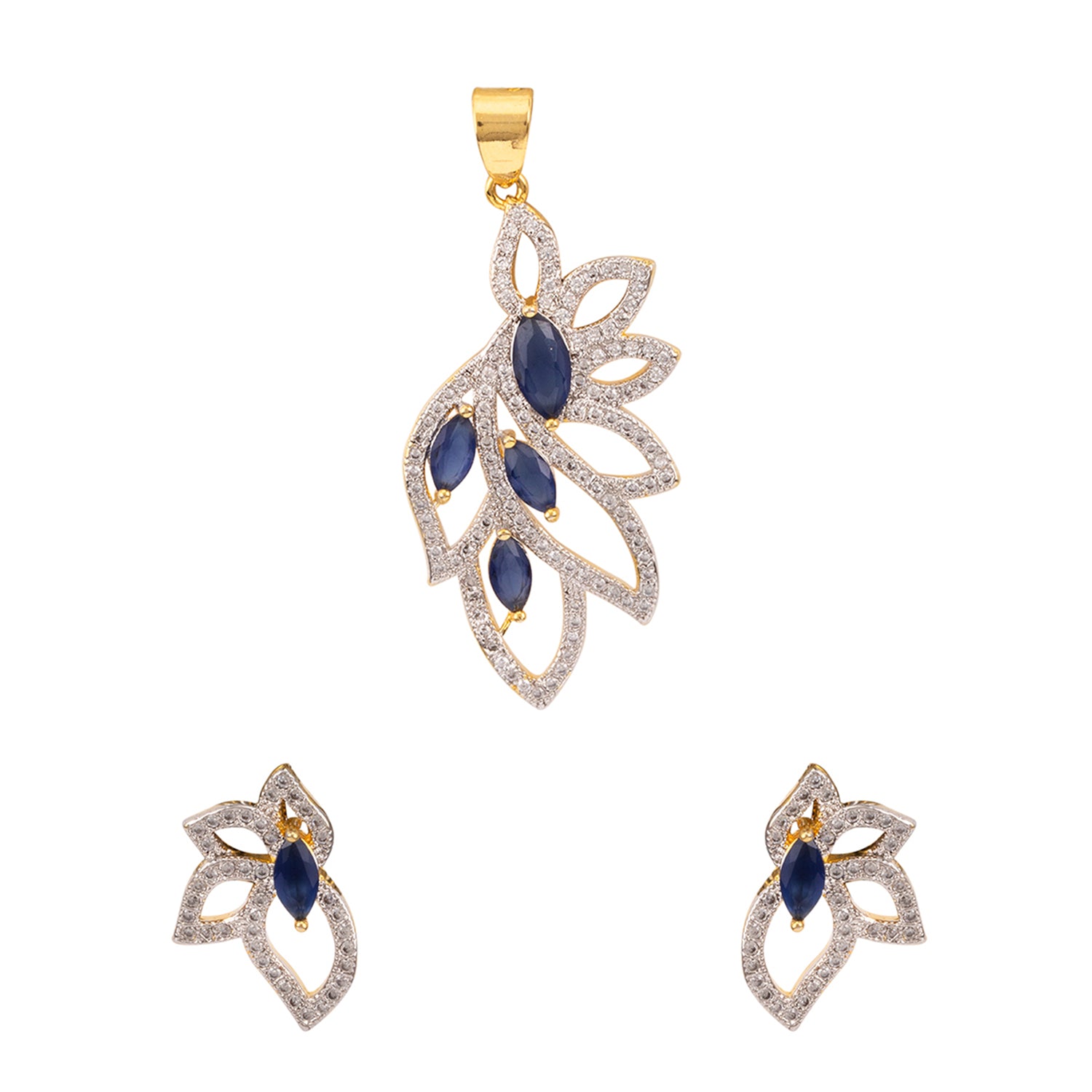 Embellished with royal blue and white zircon gems in oval and square cuts, this alluring jewellery set has been crafted from quality brass. Silver plated for added charm, the set can be paired with formal looks of all kinds.Caring for...