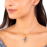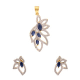 CZ Rose Gold Plated Necklace Set with Blue Stones