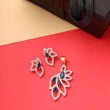Sparkling Elegance Royal Blue and White CZ Brass Silver Plated Jewellery Set