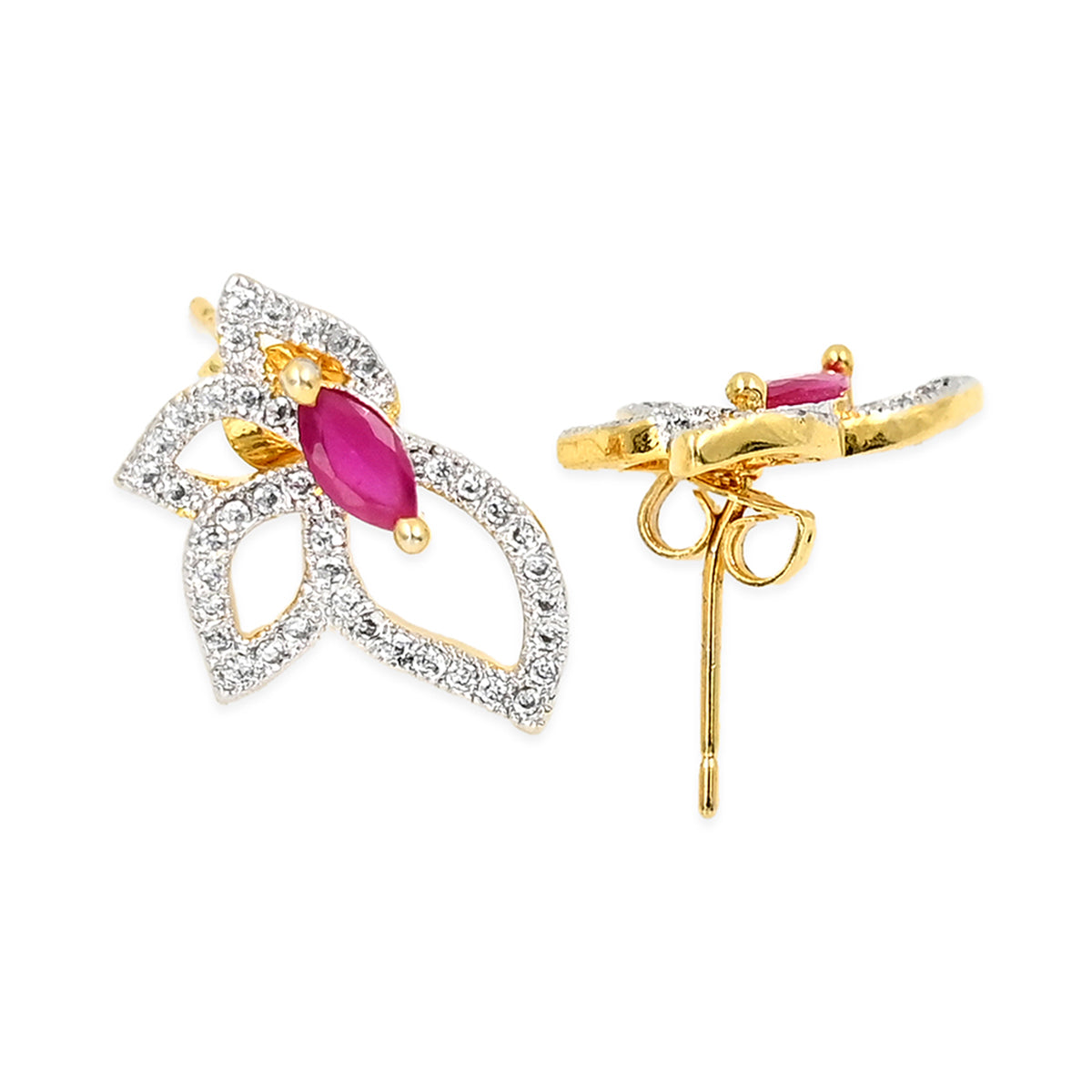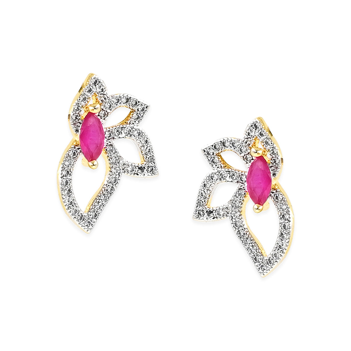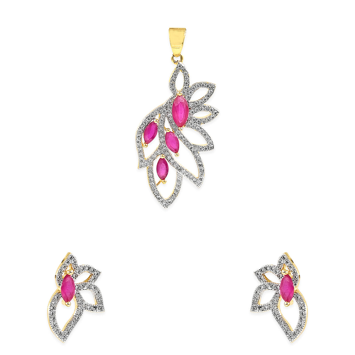 Designer Leafy Pink CZ Pendant Set