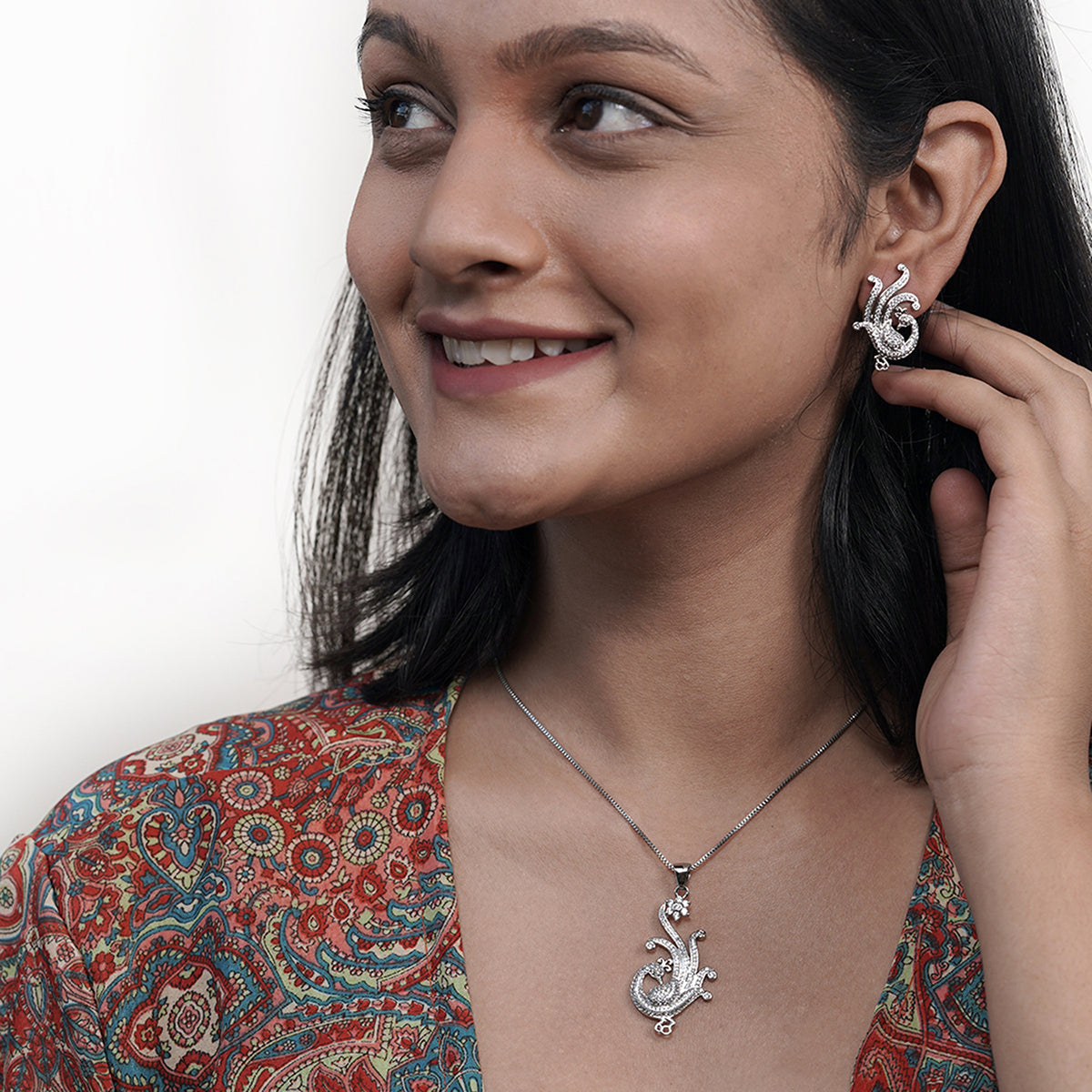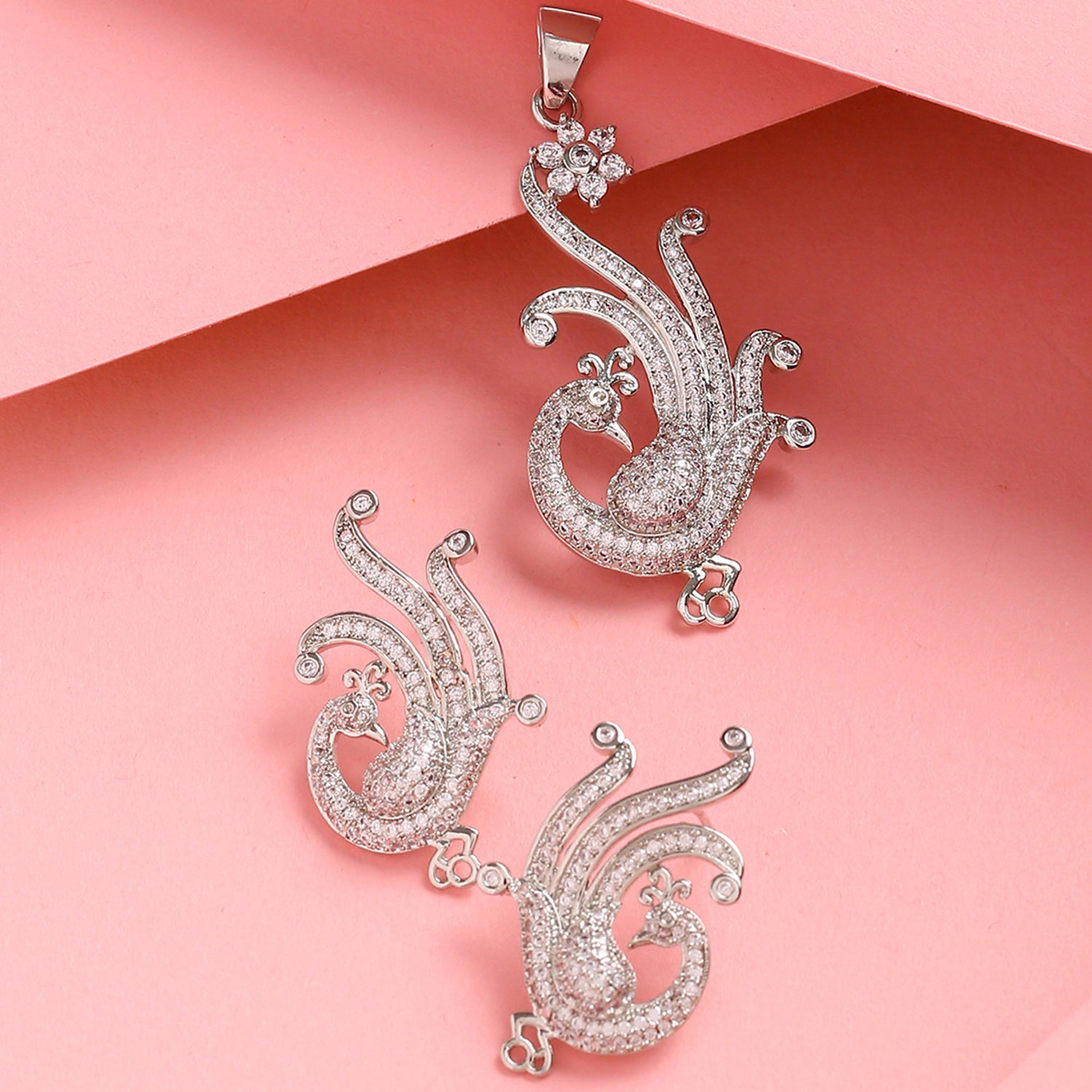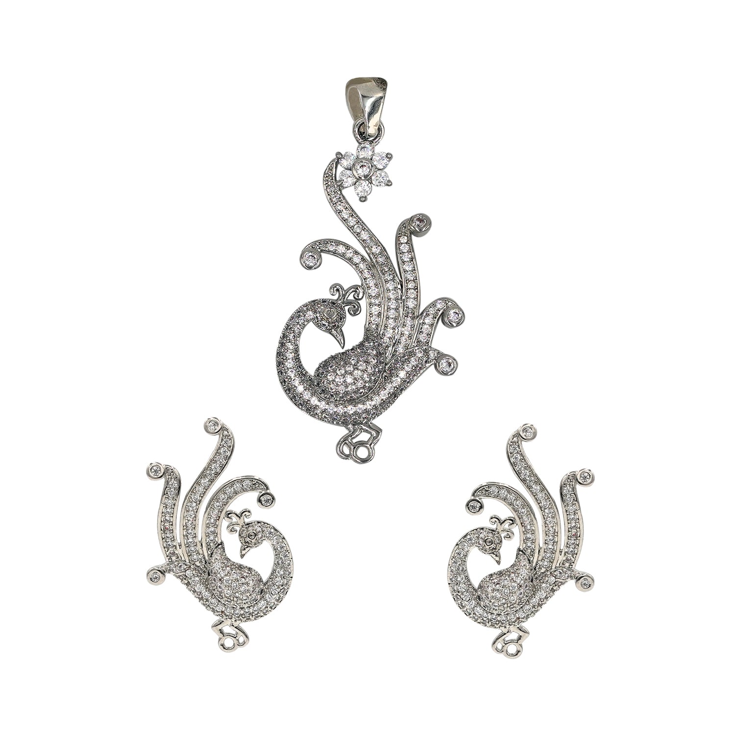 Designer Peacock Silver Plated Pendant Set