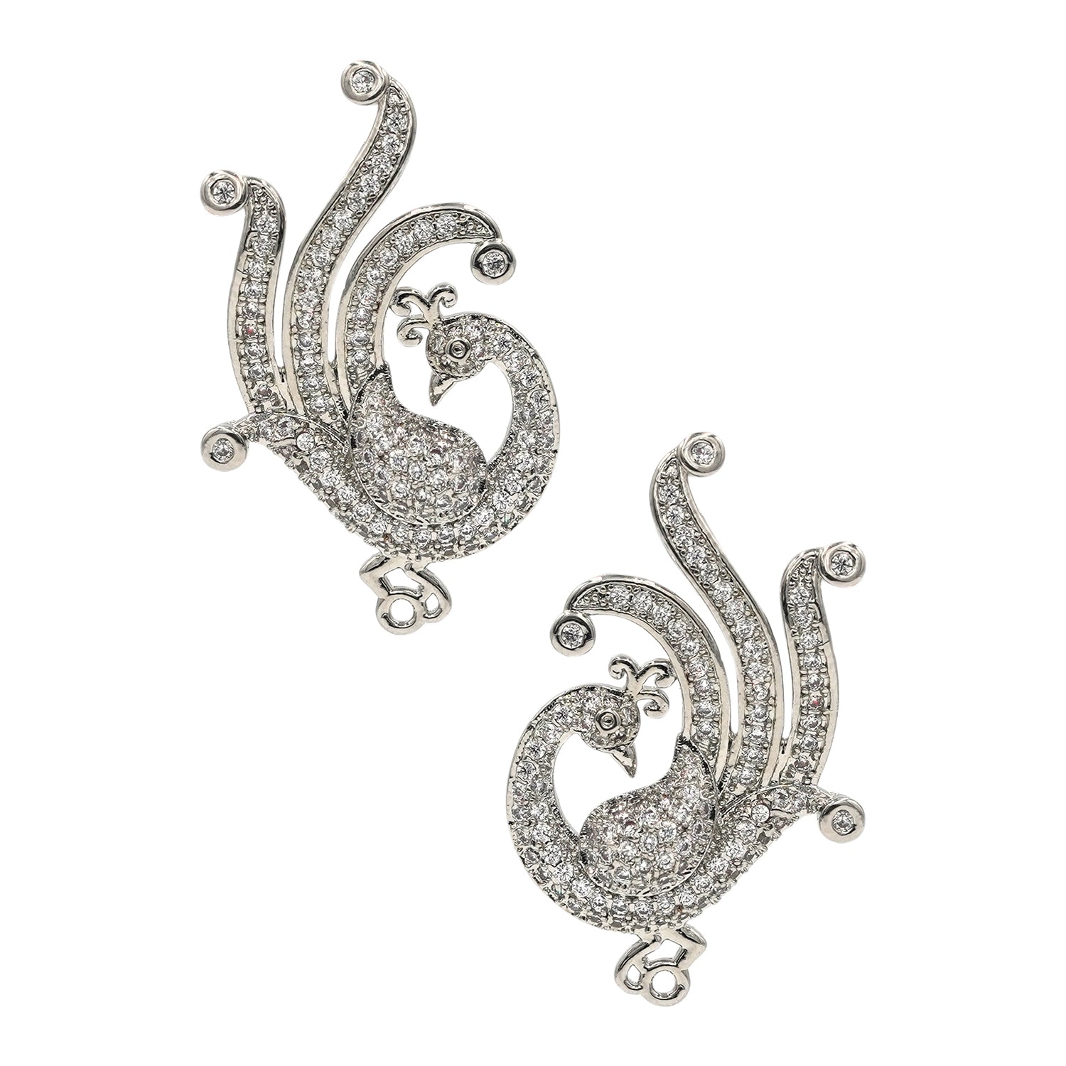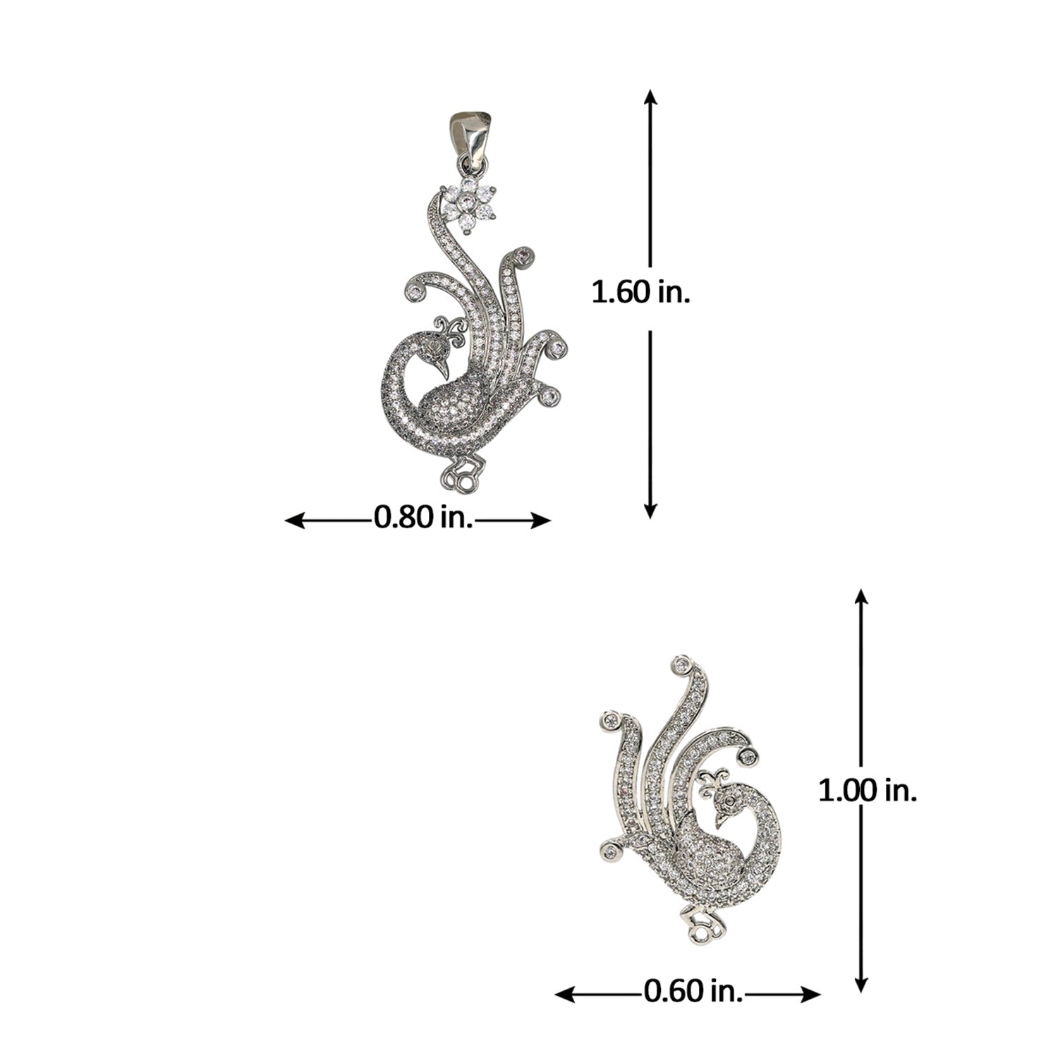 This elegant peacock pendant set is for ladies with a taste in delicate and chic jewelry. Plated with silver and studded with shiny CZ stones, this lovely piece is beautifully incarnated.