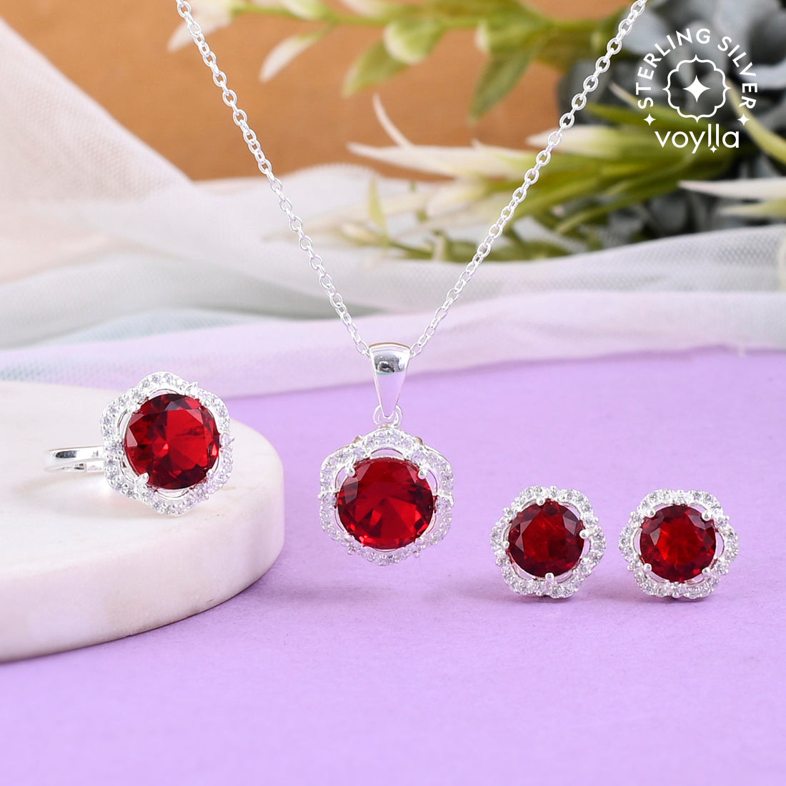 Designer Red & White Stones Studded 925 Sterling Silver Box Set