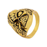 Beaded skull ring for men. Made from brass and oxidized gold plated. Wear with party attire.