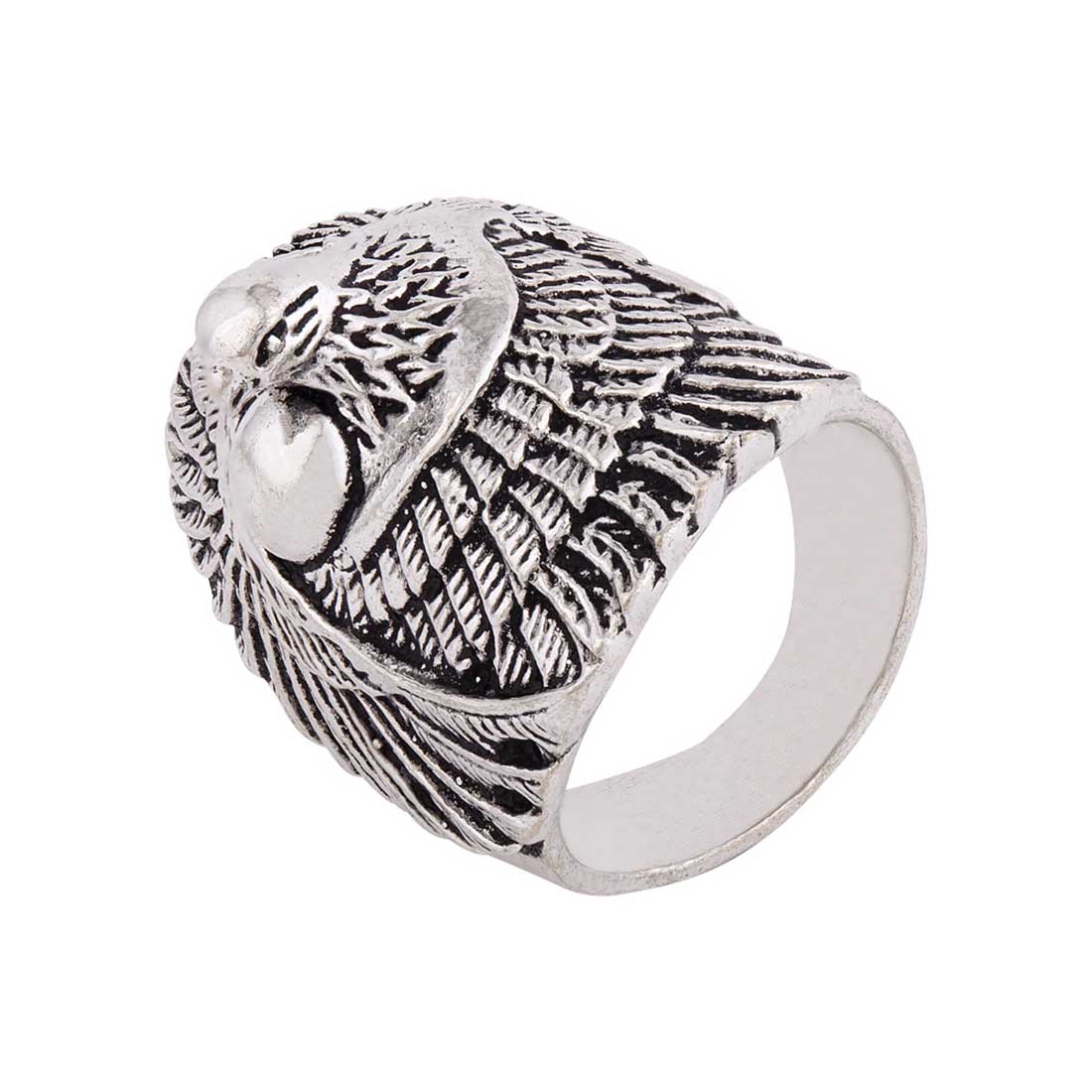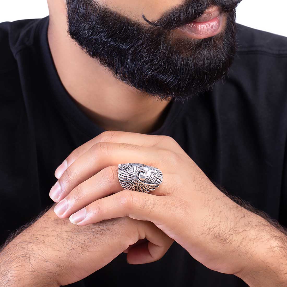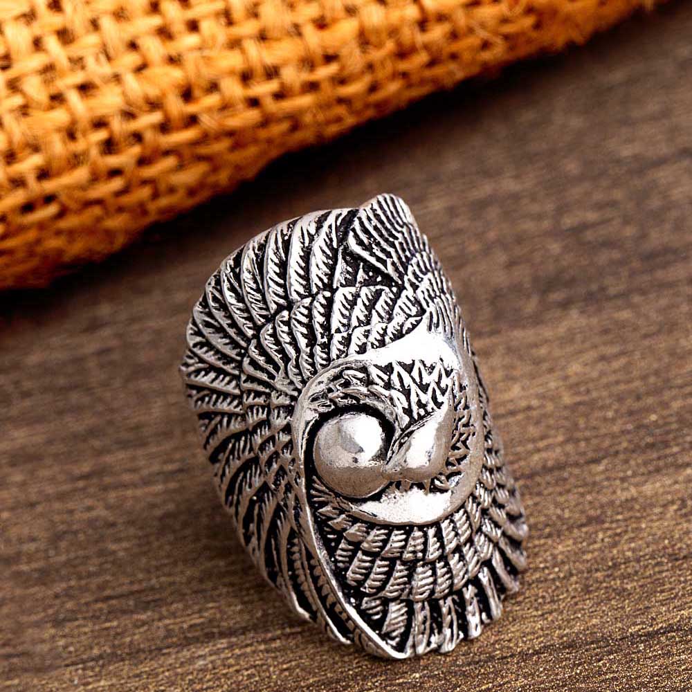 Feathered motif ring for men. Made from brass and oxidized silver plated. Good for casual wear.