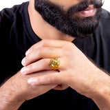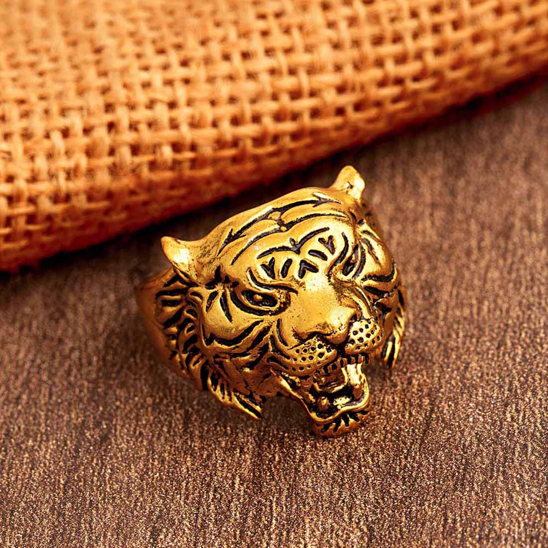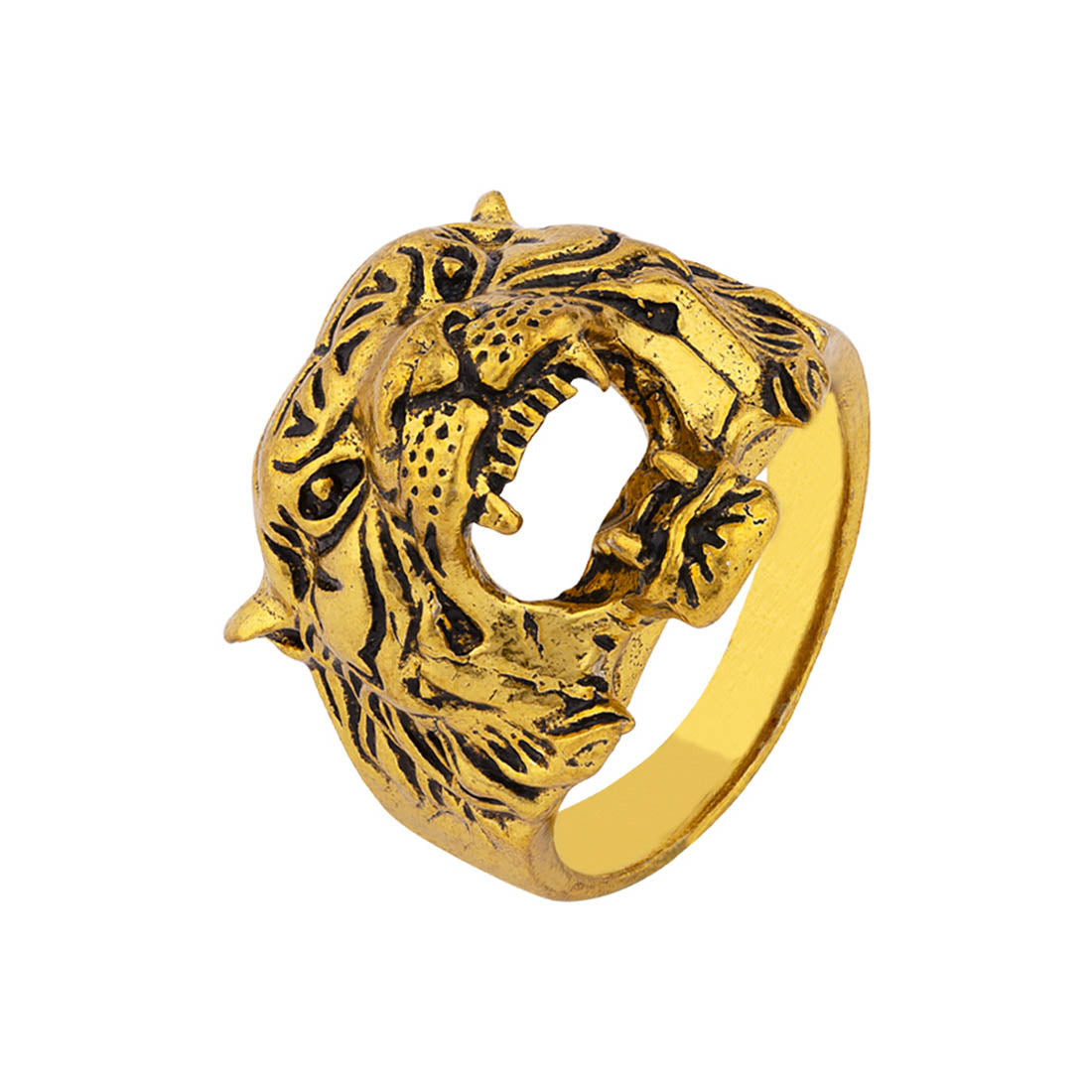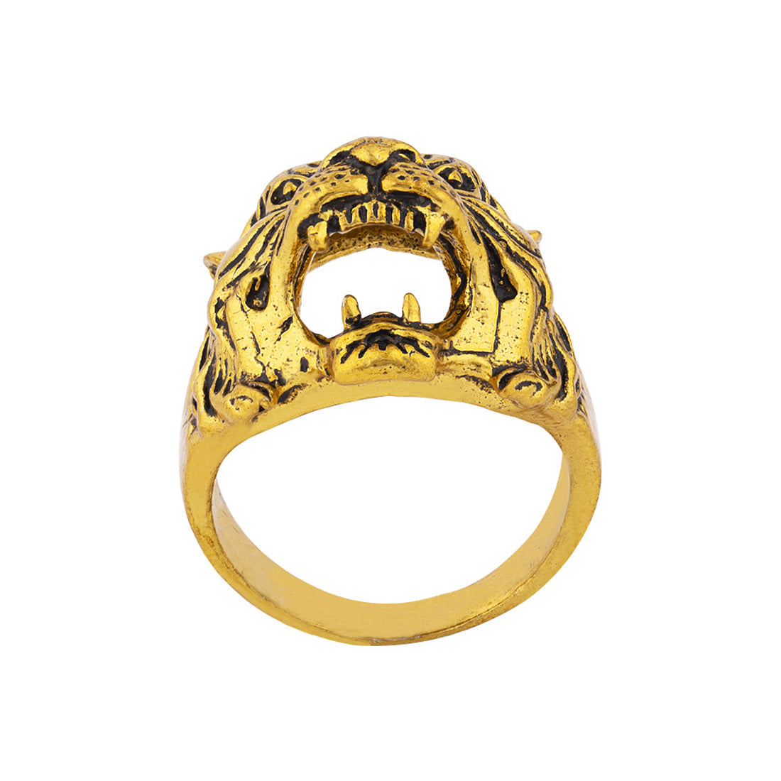 Lion head motif ring for men. Made from brass and oxidized gold plated. Good for casual wear. To make your accessories last longer avoid harsh chemicals and moisture. Keep dry, clean with dry cloth and wear with panache. "India’s largest fashion jewelry brand DARE, comes from the House of Voylla as a limited edition of handcrafted accessories for the modern Indian men. "