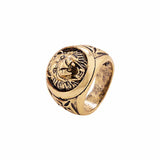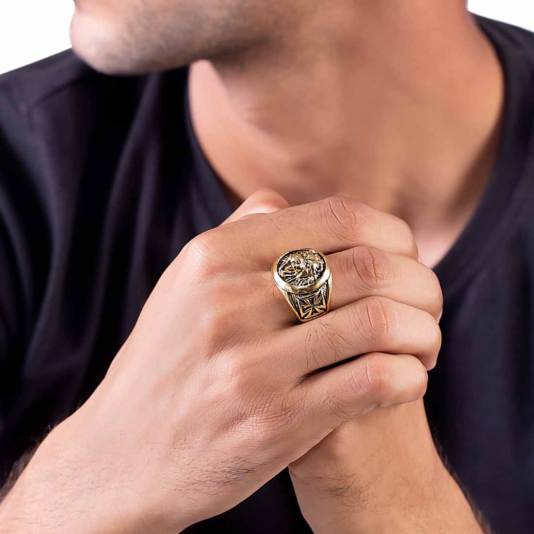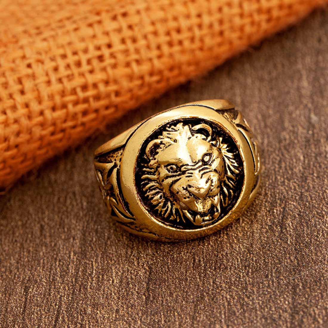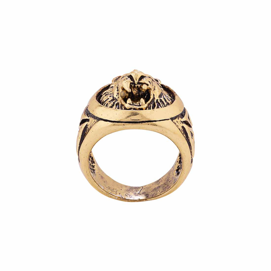 Lion head men's ring fashioned out of brass. Oxidised gold plated. Good for everyday wear.