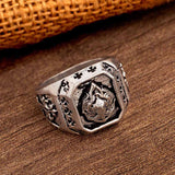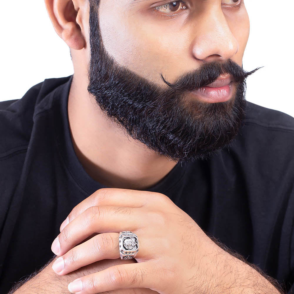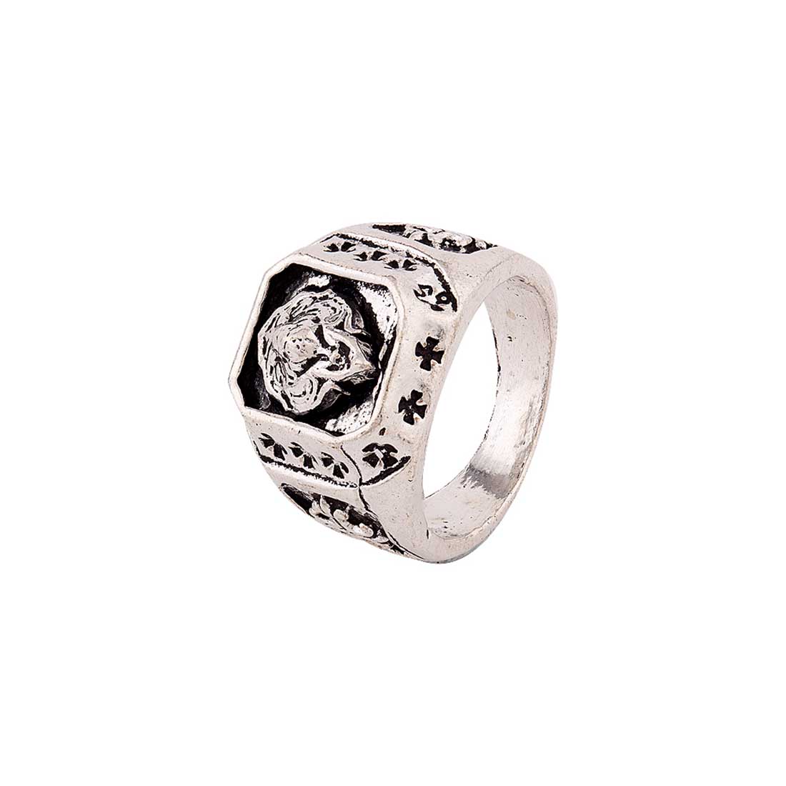 Lion insignia ring for men. Oxidized silver plated and made from brass. Good for casual wear.