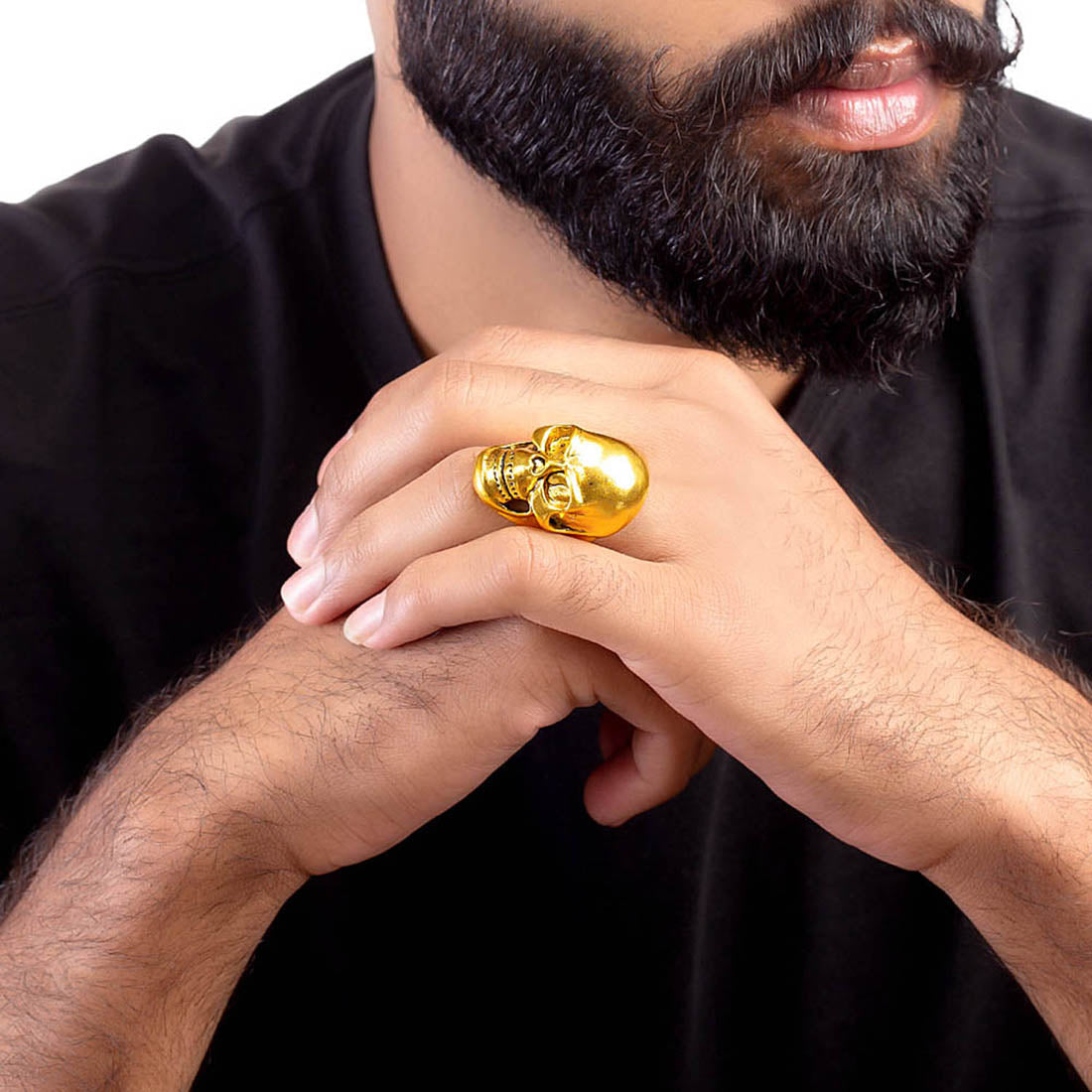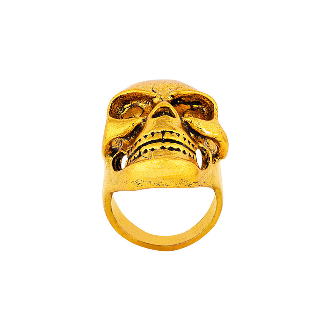 Men's skull head motif ring made from brass. Yellow gold plated and good for party looks.